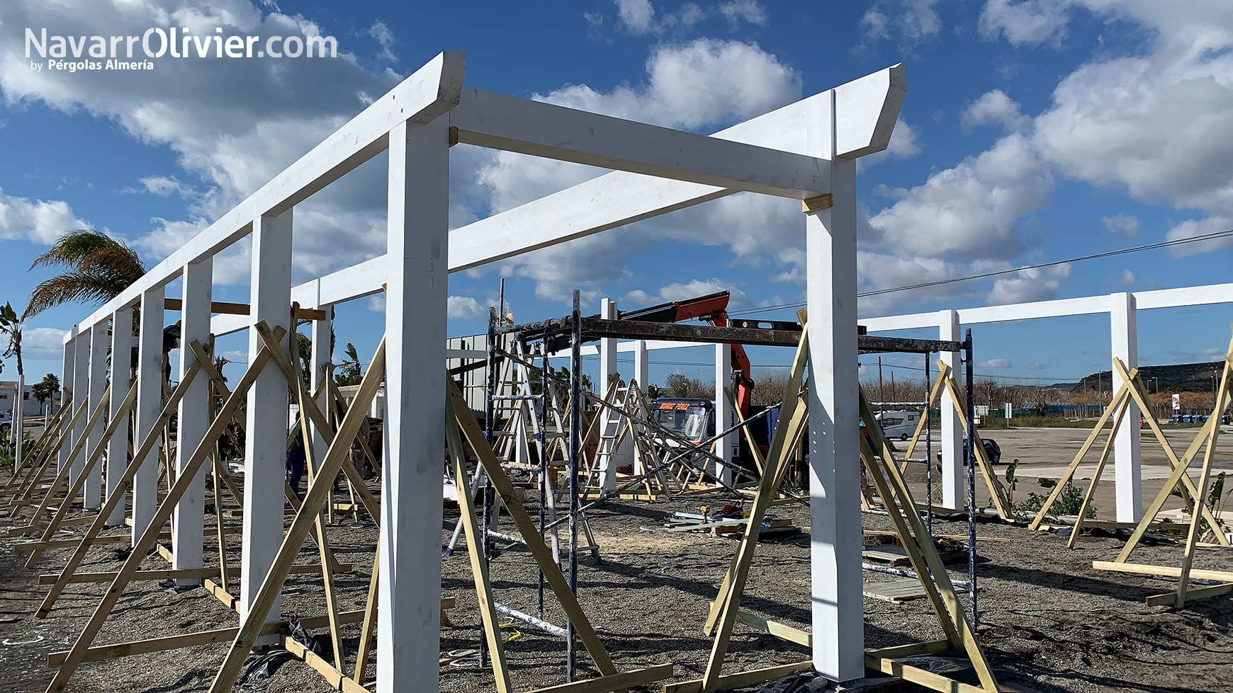 En la construcción del proyecto se optó por el color blanco como acabado de la madera para exterior combinado con texturas naturales como el cañizo de bambú interior que cubre el friso de contrachapado fenólico de la cubierta.