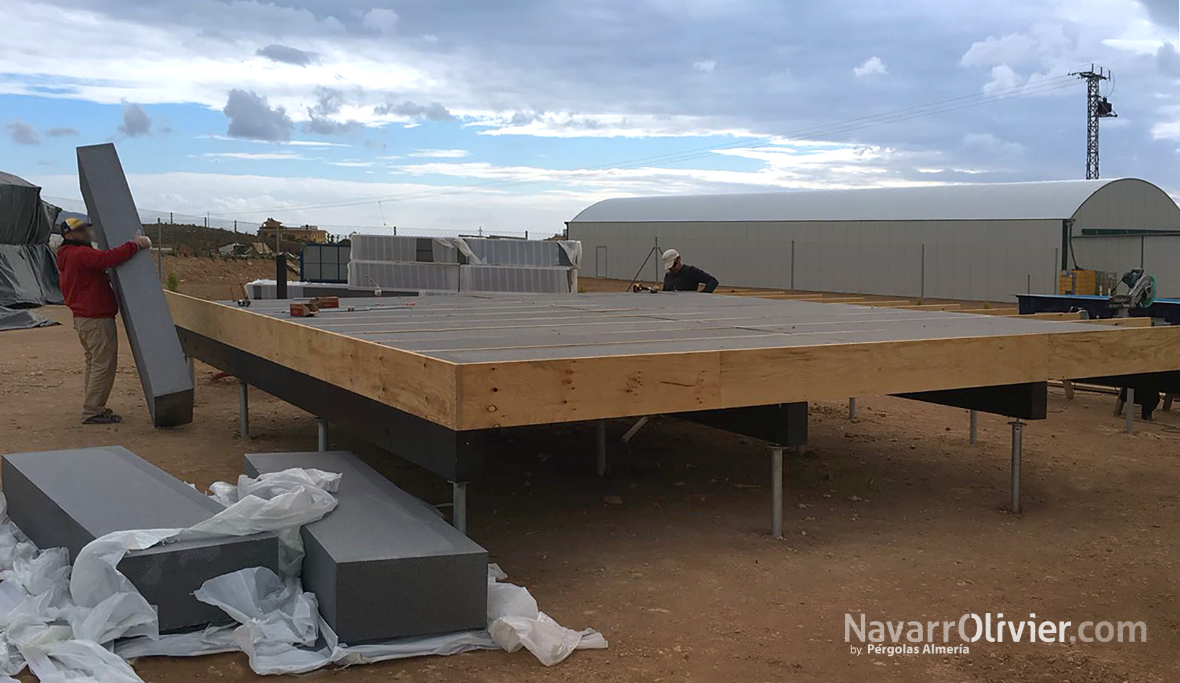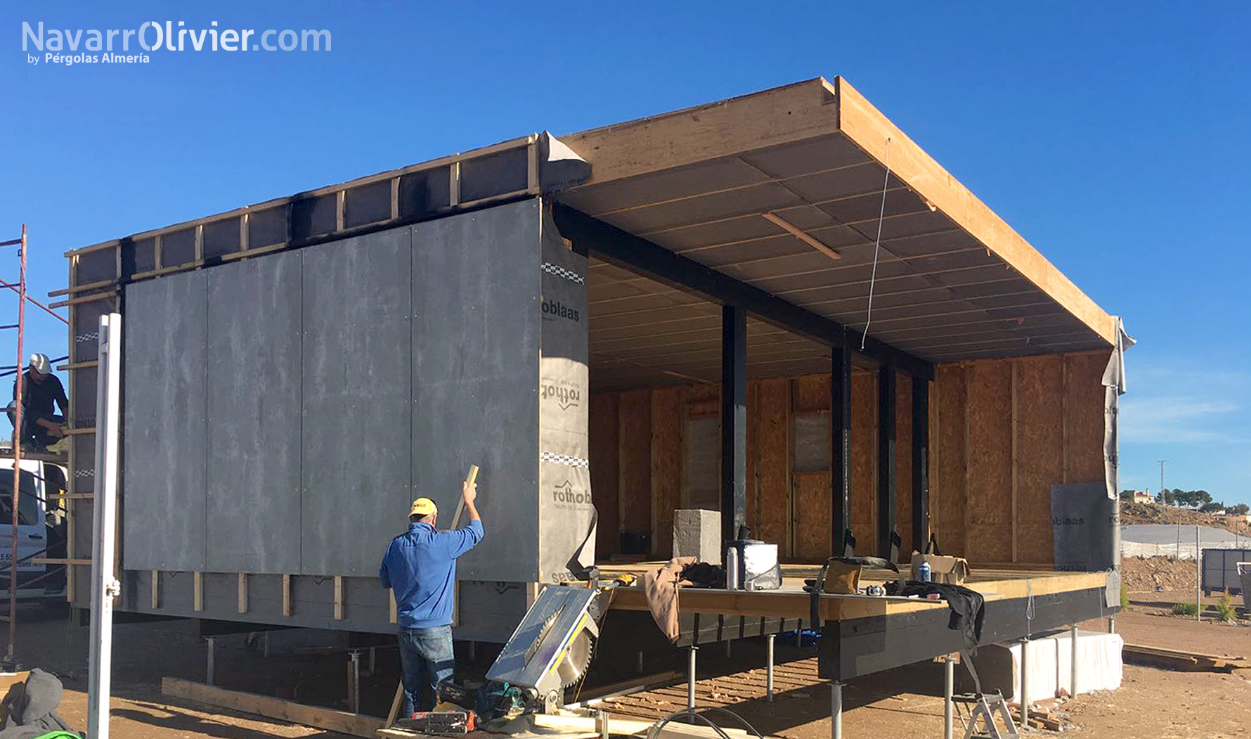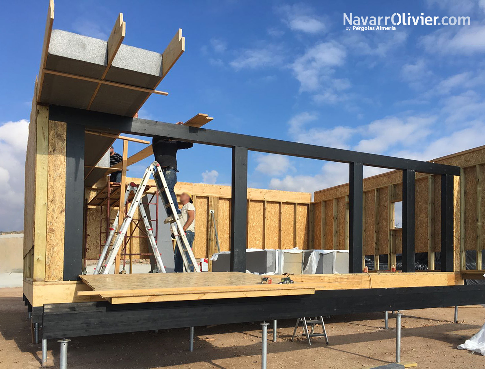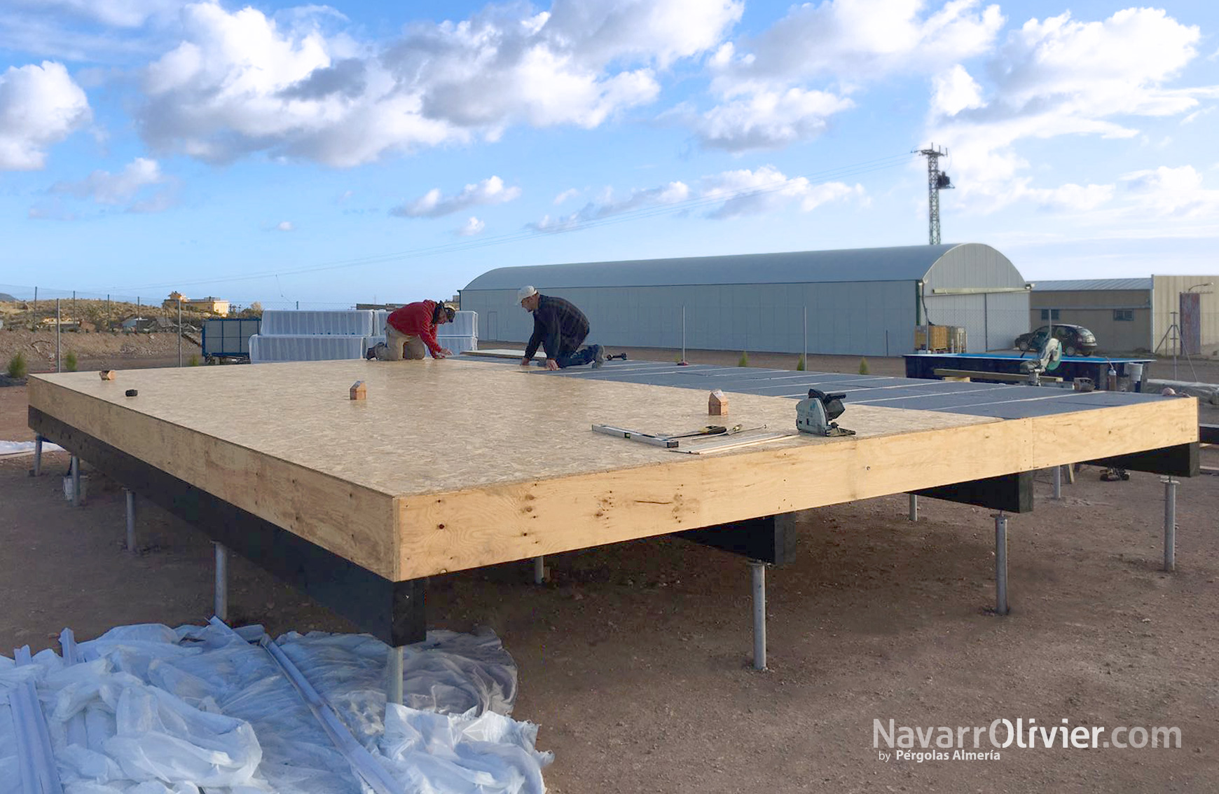 Forjado con aislamiento construido con tablero de fibras orientadas OSB, madera microlaminada y paneles de aislamiento de poliestireno expandido con grafito.
