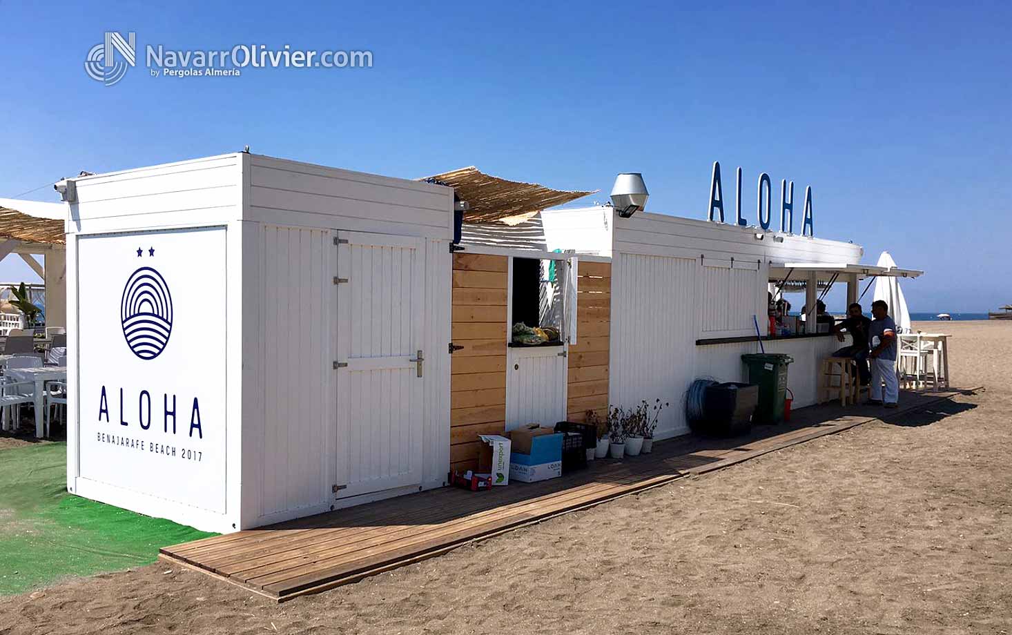 Chiringuito modular construido en madera para exterior, Aloha Playa Benajarafe, Vélez-Málaga.