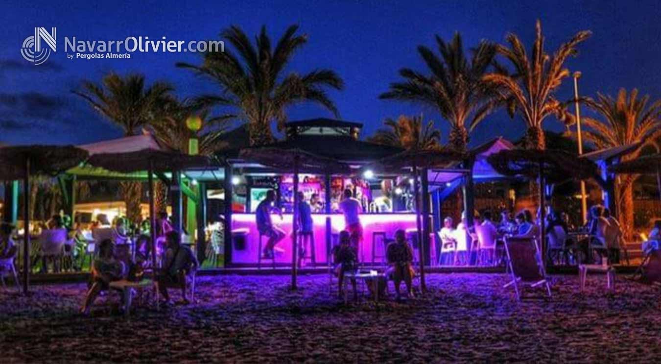 Dada la escasa superficie de la playa la configuración del establecimiento se completa con 2 pérgolas con pendiente a 2 aguas sobre la diagonal, con toldos enrollables corta viento con una gran superficie transparente que permite apreciar los fantásticos atardeceres junto al mar.