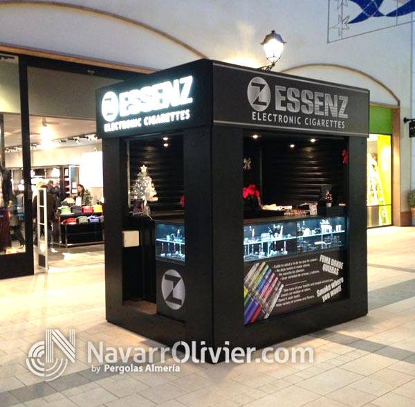 Stand modular transportable para punto de venta directa de cigarrillos electrónicos.