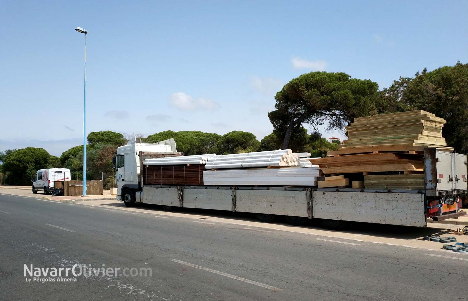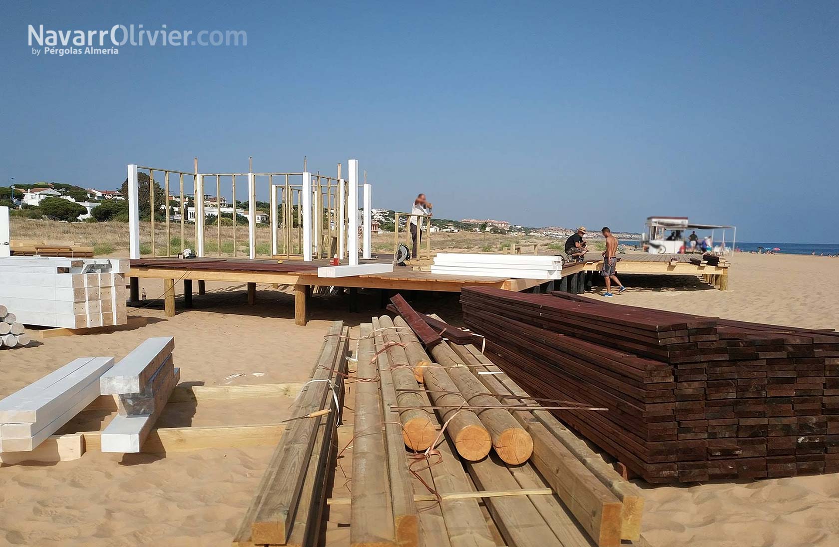La plataforma construida con un entramado de vigas de madera maciza tratada en autoclave sirve como base para las instalaciones preparadas para hostelería.