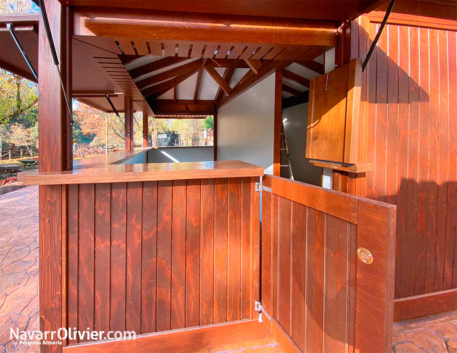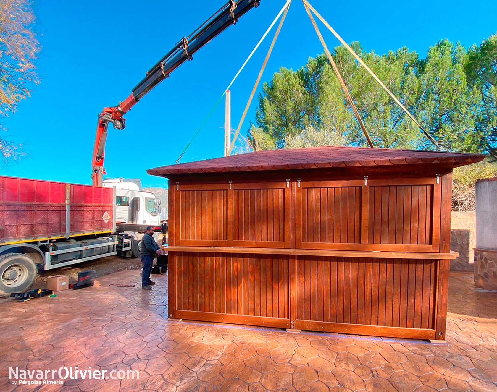 Construcción de chiringuito de madera en módulos autoportantes para facilitar su transporte, montaje en el emplazamiento de destino y desmontaje al finalizar la temporada.
