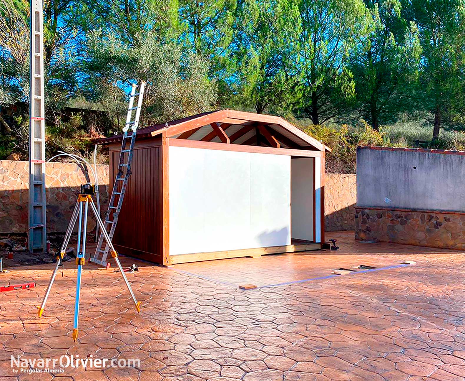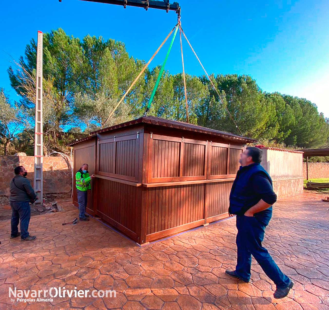 Construcción fabricada en madera estructural preparada para exterior con instalación eléctrica completa personalizada ajustada a normativa.