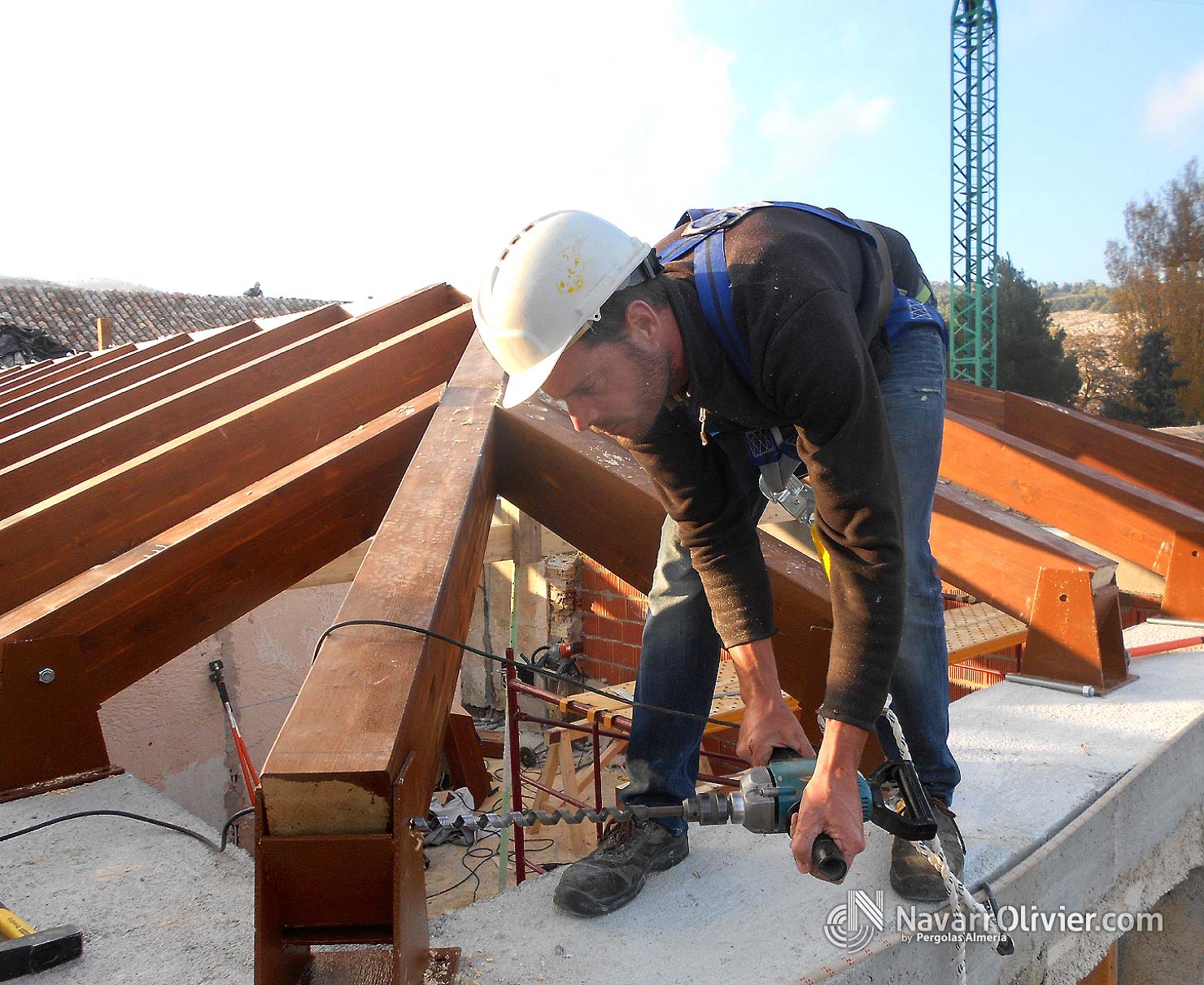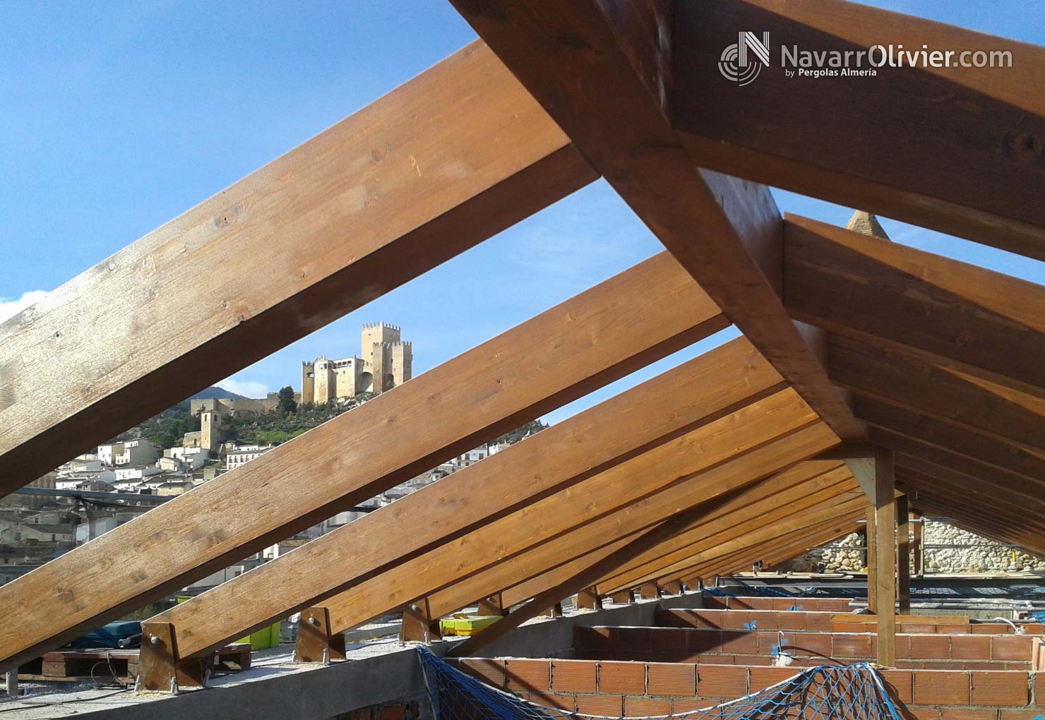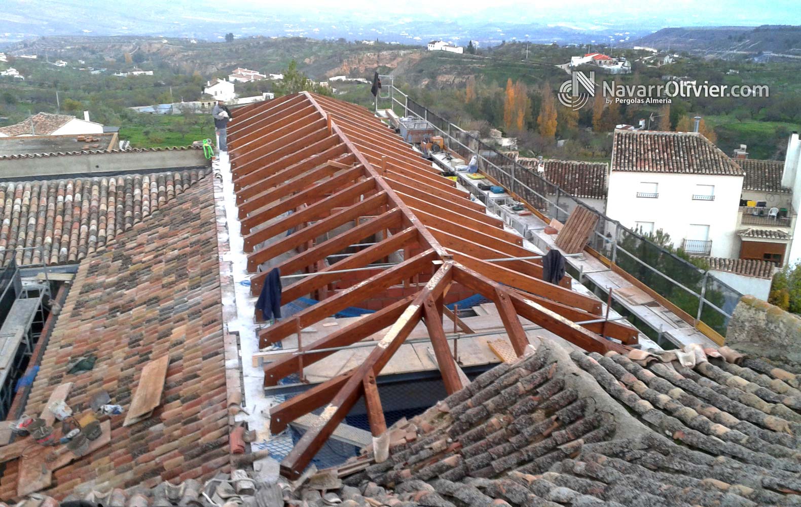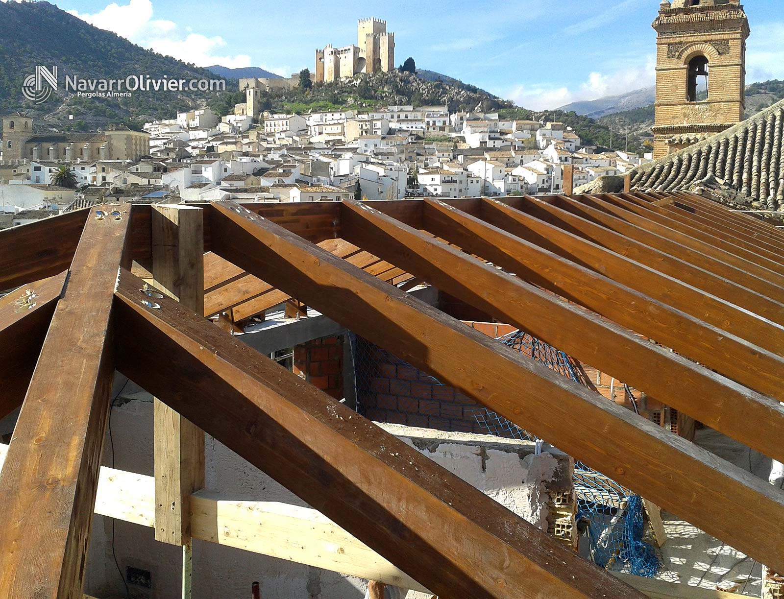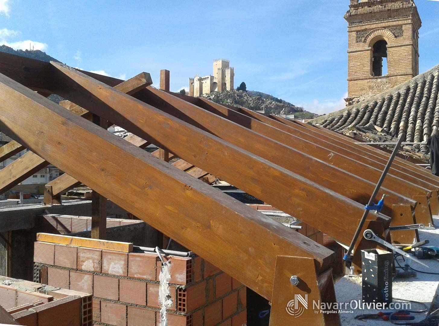 En el año 2012 nuestra empresa en colaboración con la constructora albaida comenzaron la rehabilitaciín y restauración de la construcción. Tras la consolidación de muros se acometio el montaje de la estructura principal de la cubierta la misma se hacienta ahora sobre un zuncho reforzado de hormigon en el cual se instalarón los estrivos de acero que soportan las vigas de gran sección, el friso se realizo en panel sandwich con machihembrado visto desde el exterior, acabado exterior en teja árabe envejecida para integrarse con las cubiertas existentes.