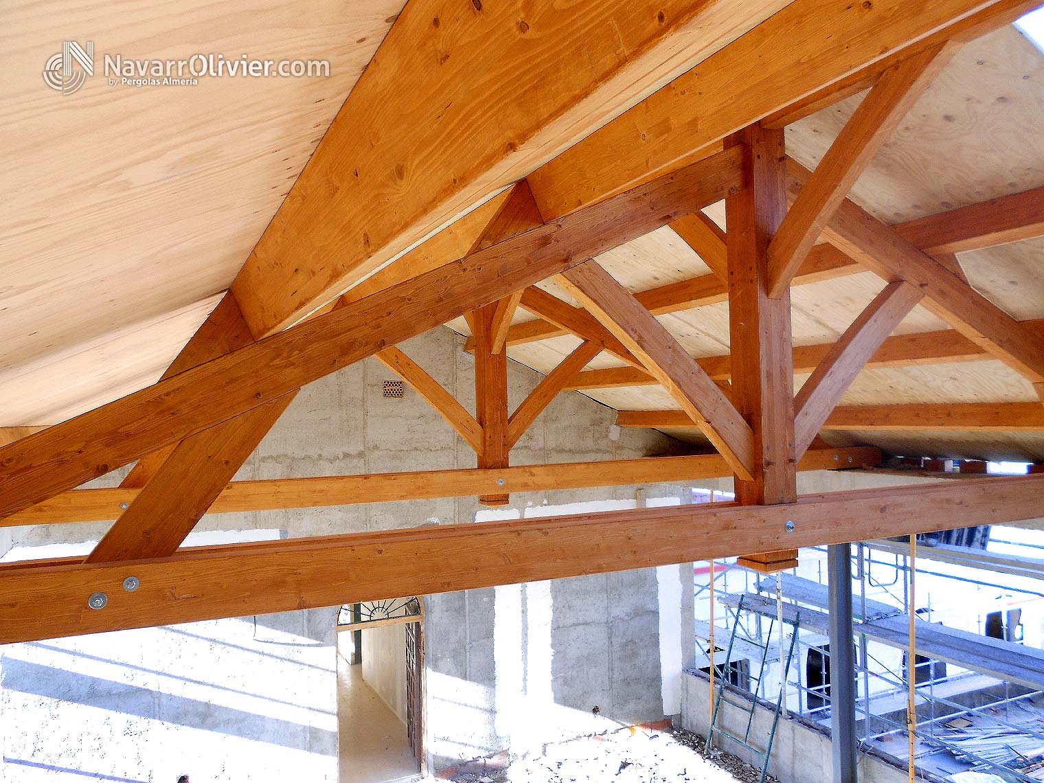 Estructura de madera construidaPilares de madera laminada GL24 de 20x20cm