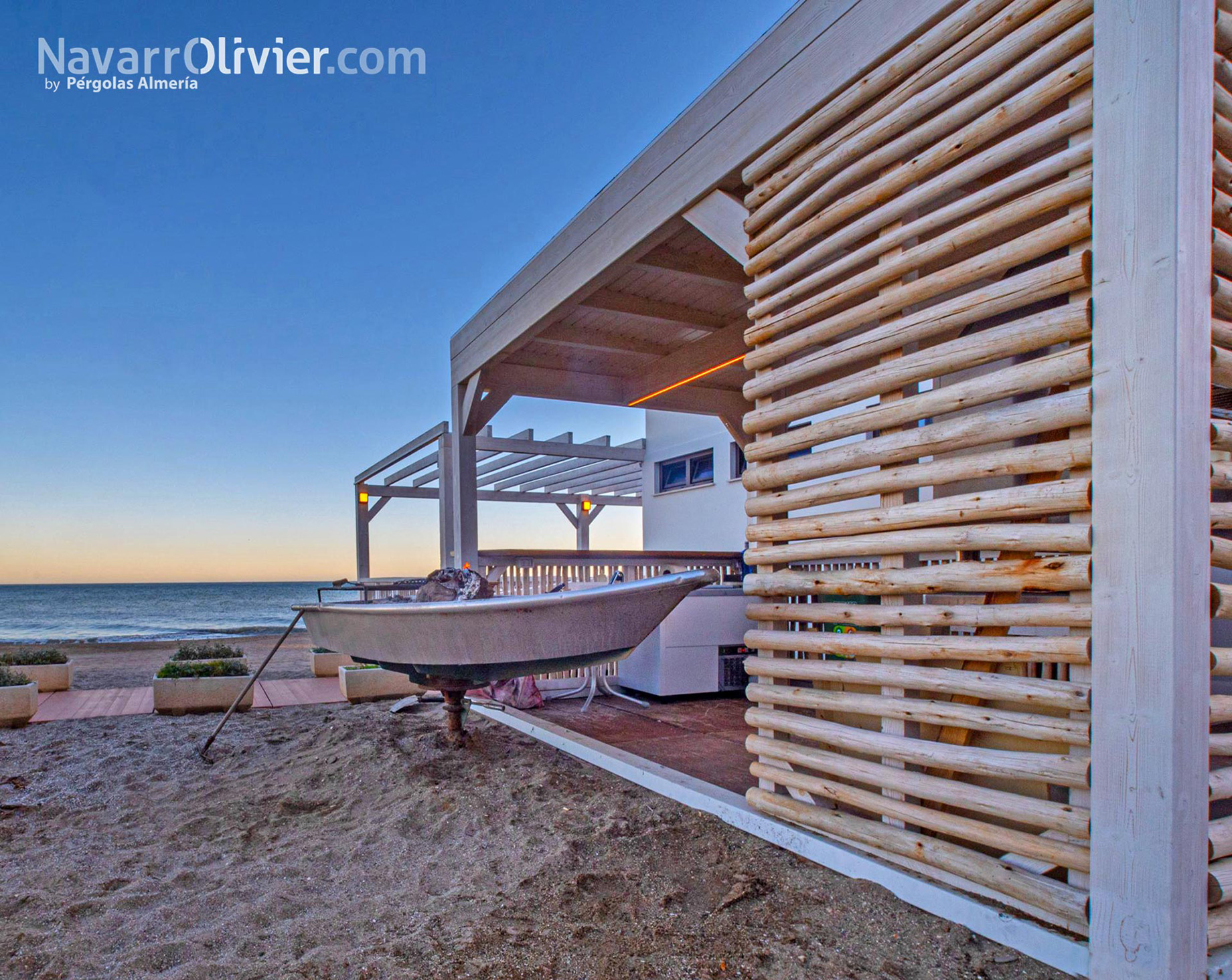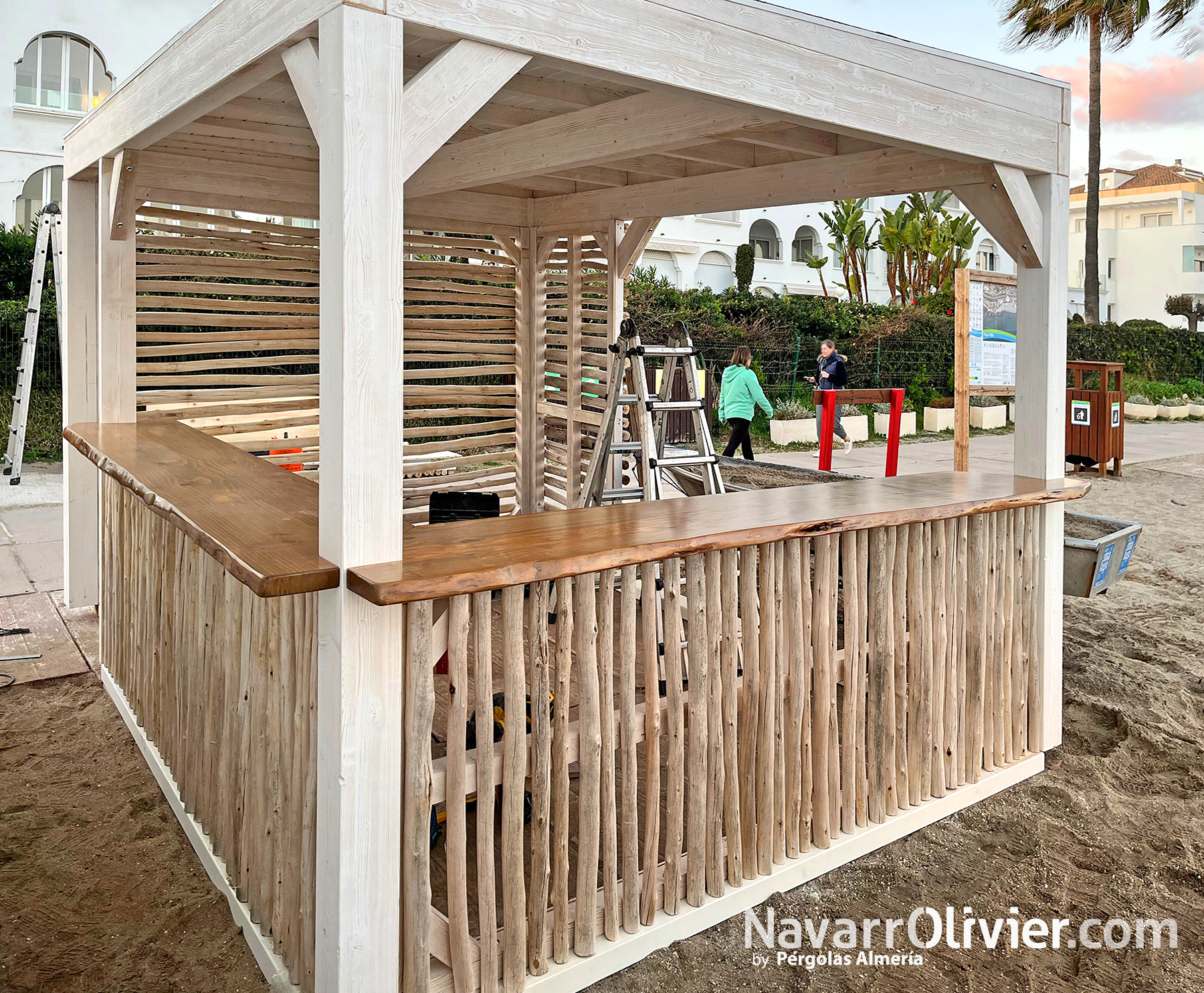 Construimos espeteros de playa con madera tratada para exterior, personalizados.Pérgolas ajustadas a la normativa en vigor, construcciones fijas o desmontables para temporada.