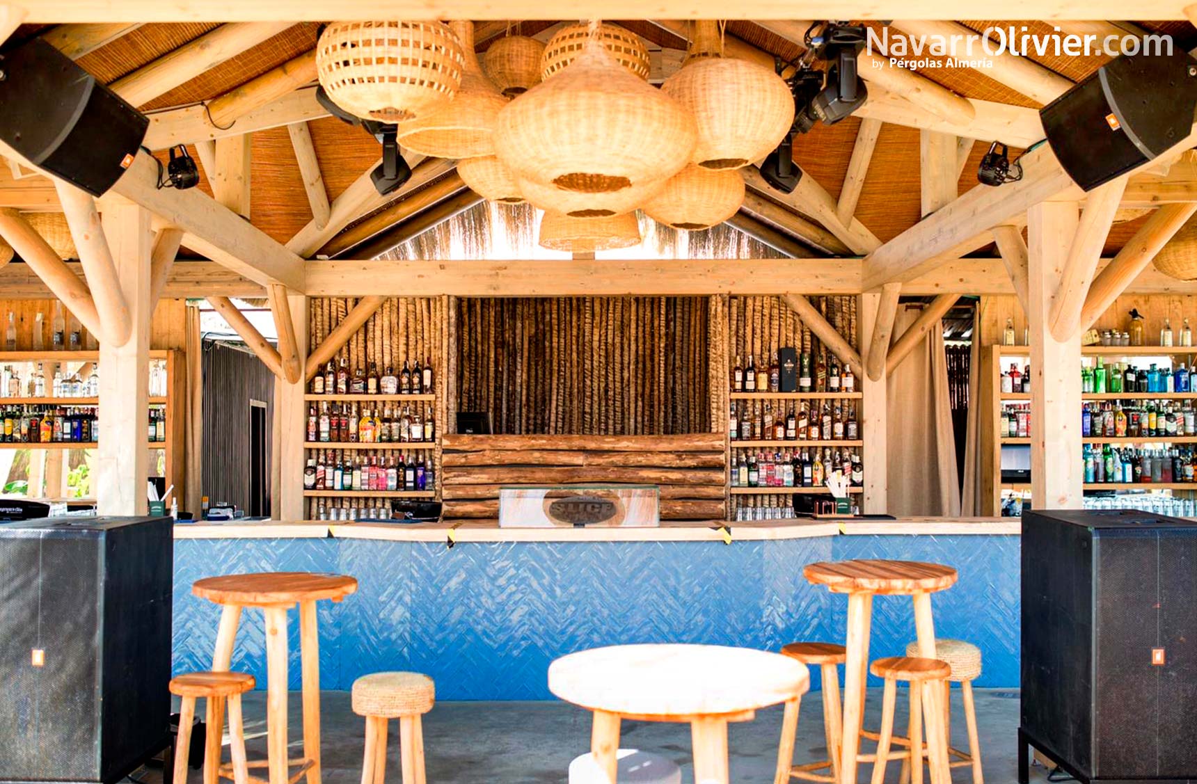 Las instalaciones de carácter fijo cuentan con una estructura de múltiples pendientes fabricada en madera laminada y tronco calibrado.