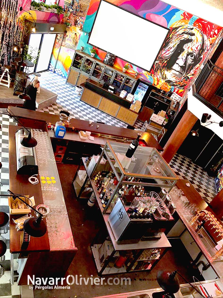 Su ecléctico interiorismo se inspira en un film hispano-frances «làuberge espagnole», el local de 980 m2 combina estilo industrial vintage con el street art que viste sus muros.