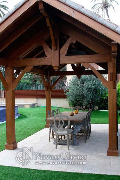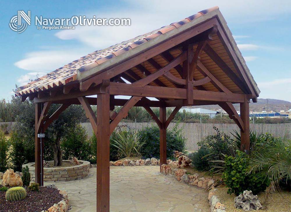 Construcción de pérgolas en madera estructural con cubierta a 2 aguas fabricadas en Almería para todo el territorio Español.
