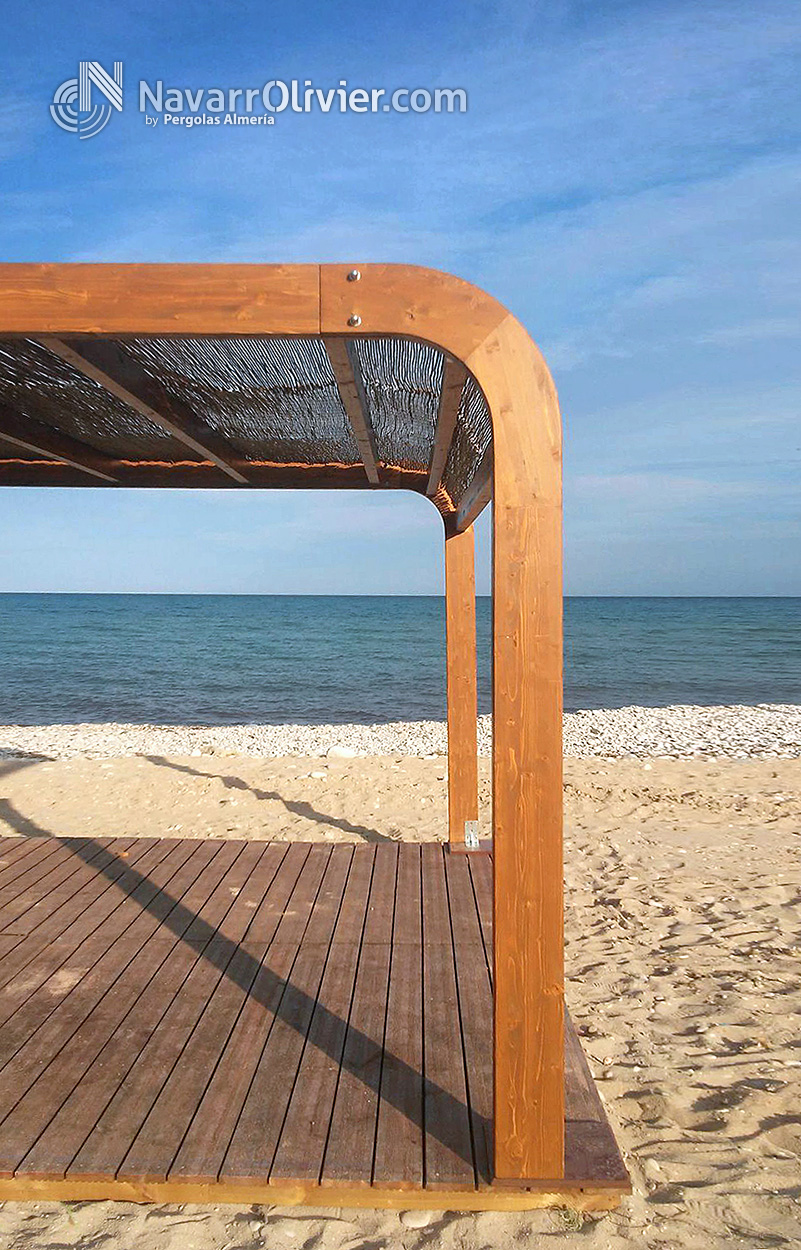 Gran parte de los clientes de Navarrolivier son empresarios del sector de la hotelería de temporada ya somos fabricantes de chiringuito y kioscos. Como complemento indispensable para este sector construimos pérgolas desmontables en madera para exterior de diferentes tipos y acabados, estructuras de simple montaje, gran durabilidad y bajo mantenimiento.