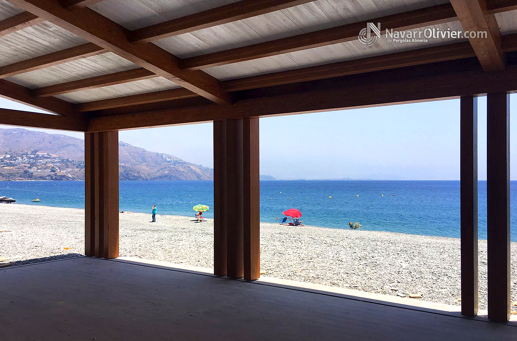 La estructura se planifico para poder portar un cerramiento en cortina de cristal para apreciar al máximo las vistas de esta encantadora playa andaluza. Chiringuito Primera Ola, Almuñecar, Granada.