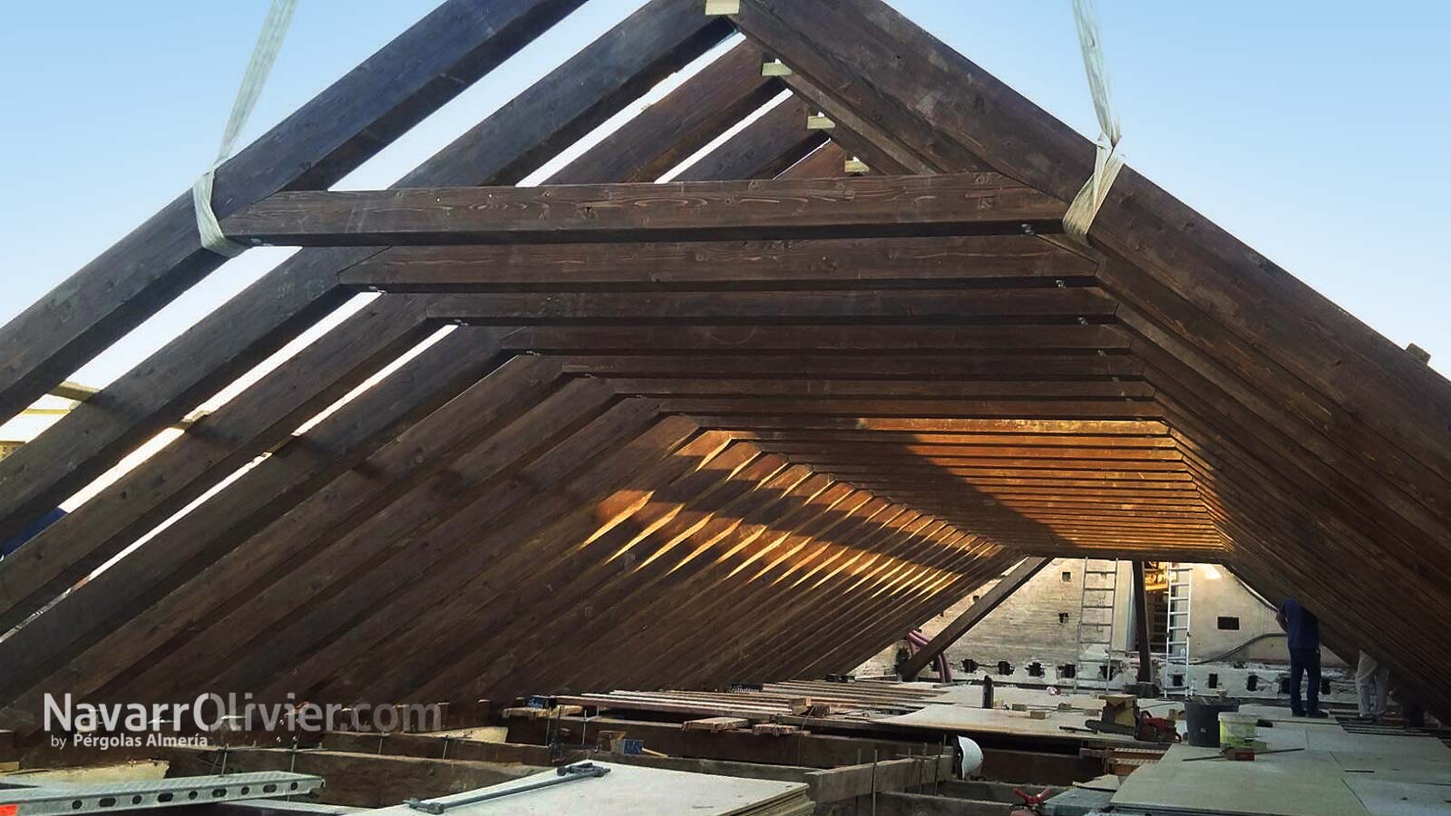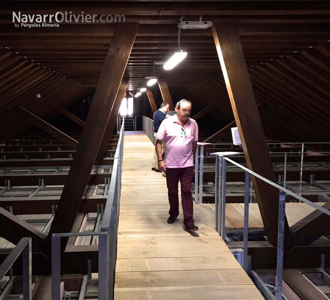 Para conservar el estilo de la edificación histórica los elementos estructurales de madera aserrada fueron reemplazados por madera laminada encolada mecanizados con los mismos ensambles y empalmes que presentaba el método constructivo original.
