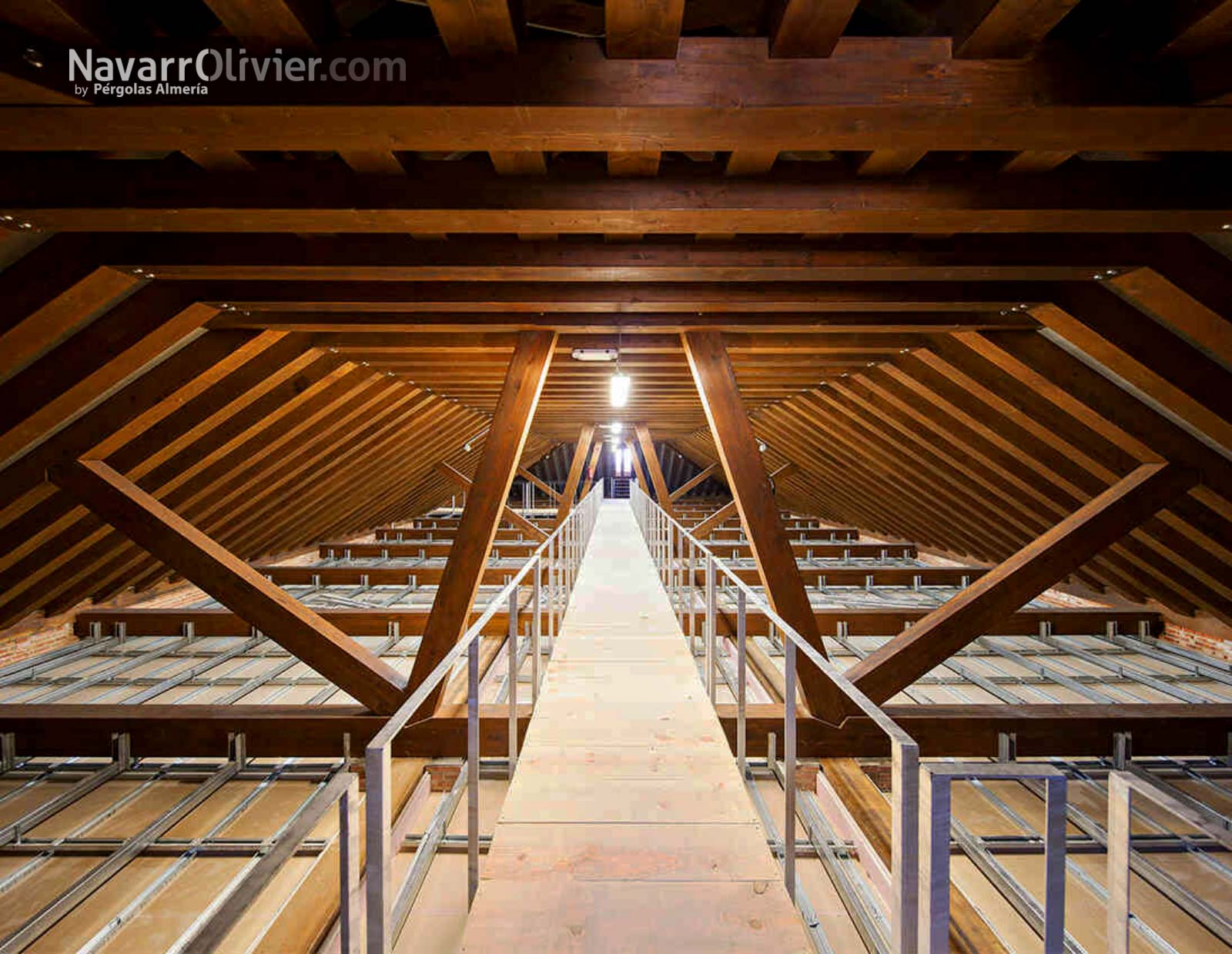 Las cubiertas rehabilitadas cuentan con un nuevo aporte en aislación con la incorporación de panel sandwich y una cámara de aire (cubierta ventilada) rematada en teja árabe.