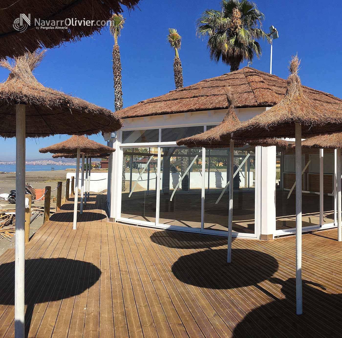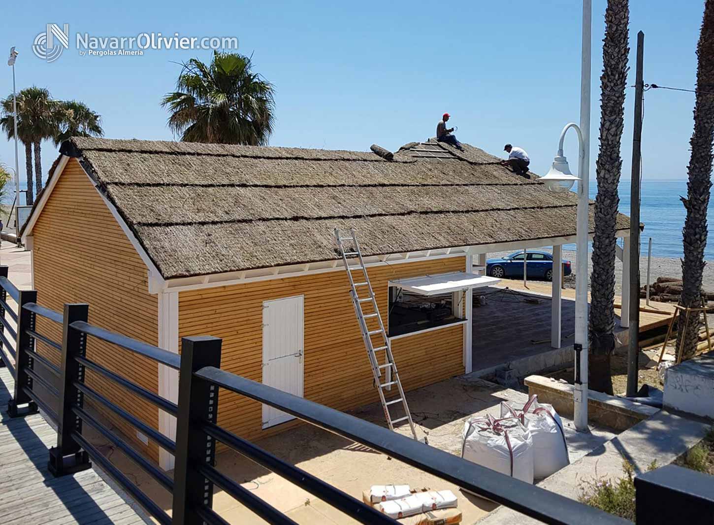 Entre las intervenciones realizadas en el proyecto se incluyen sombrillas de esparto y cartrix en primera línea.