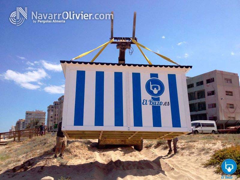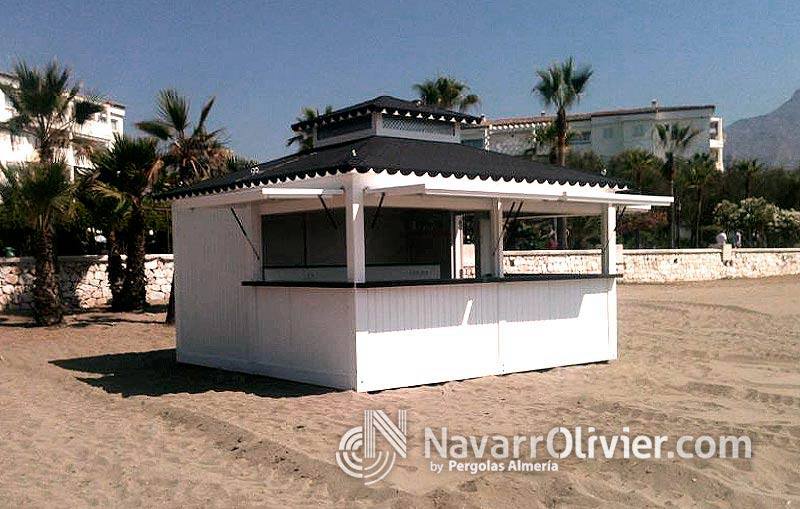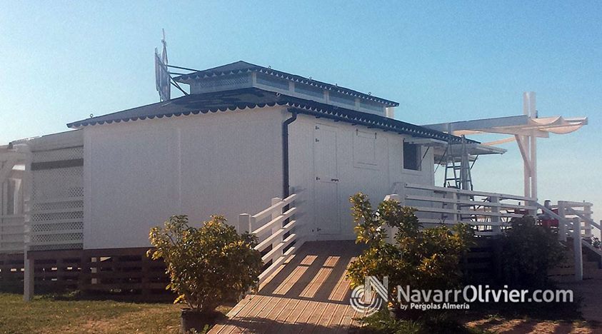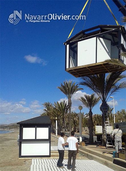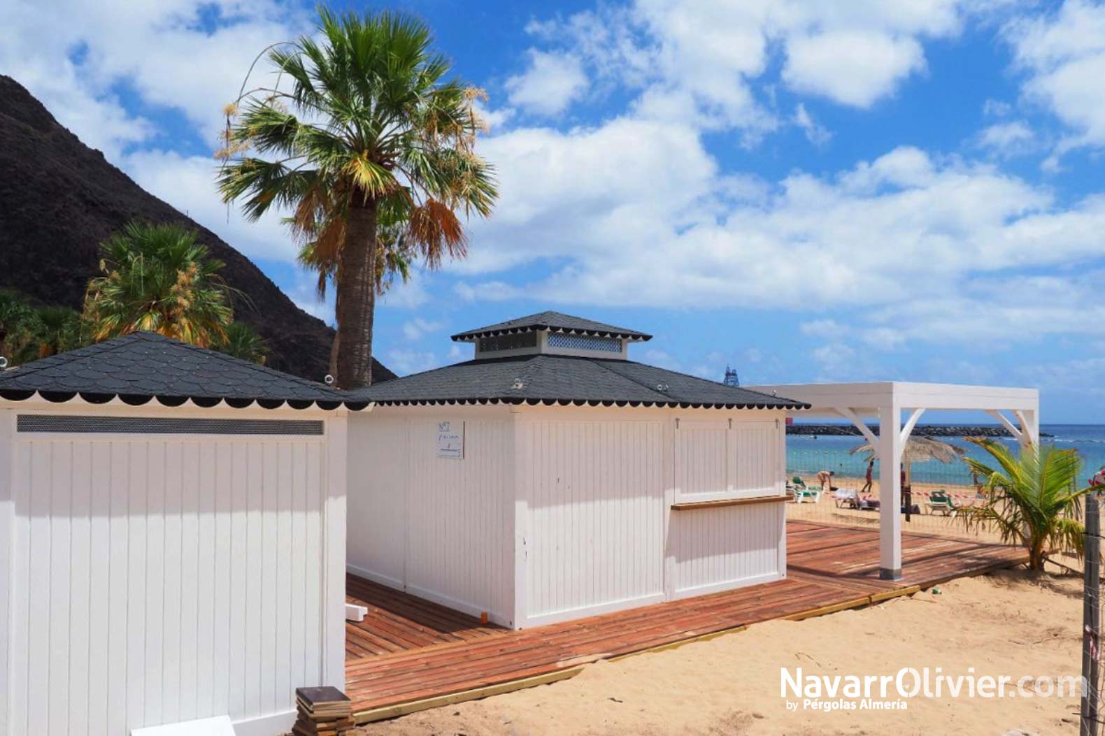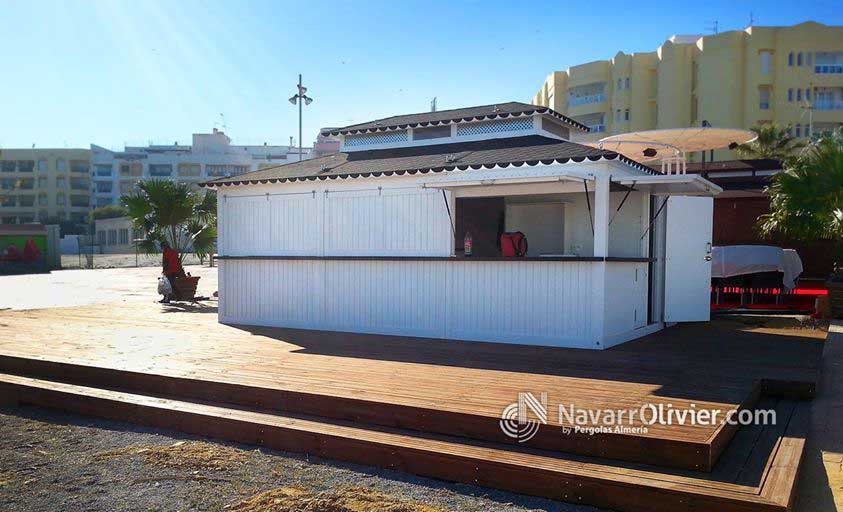 Módulos de madera especialmente pensados para ser utilizados en el exterior. Equipamiento de playa para empresarios, instituciones y particulares. Chiringuitos preparados para ambiente marítimo equipados con instalación eléctrica, sanitaria y con posibilidades de personalización según su uso lo requiera.