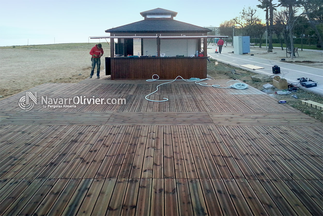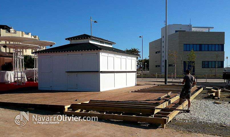 Construcción de módulos de madera transportable para hostelería de playa. Fabricación y montaje de equipamiento en madera para playa y úrbanos.