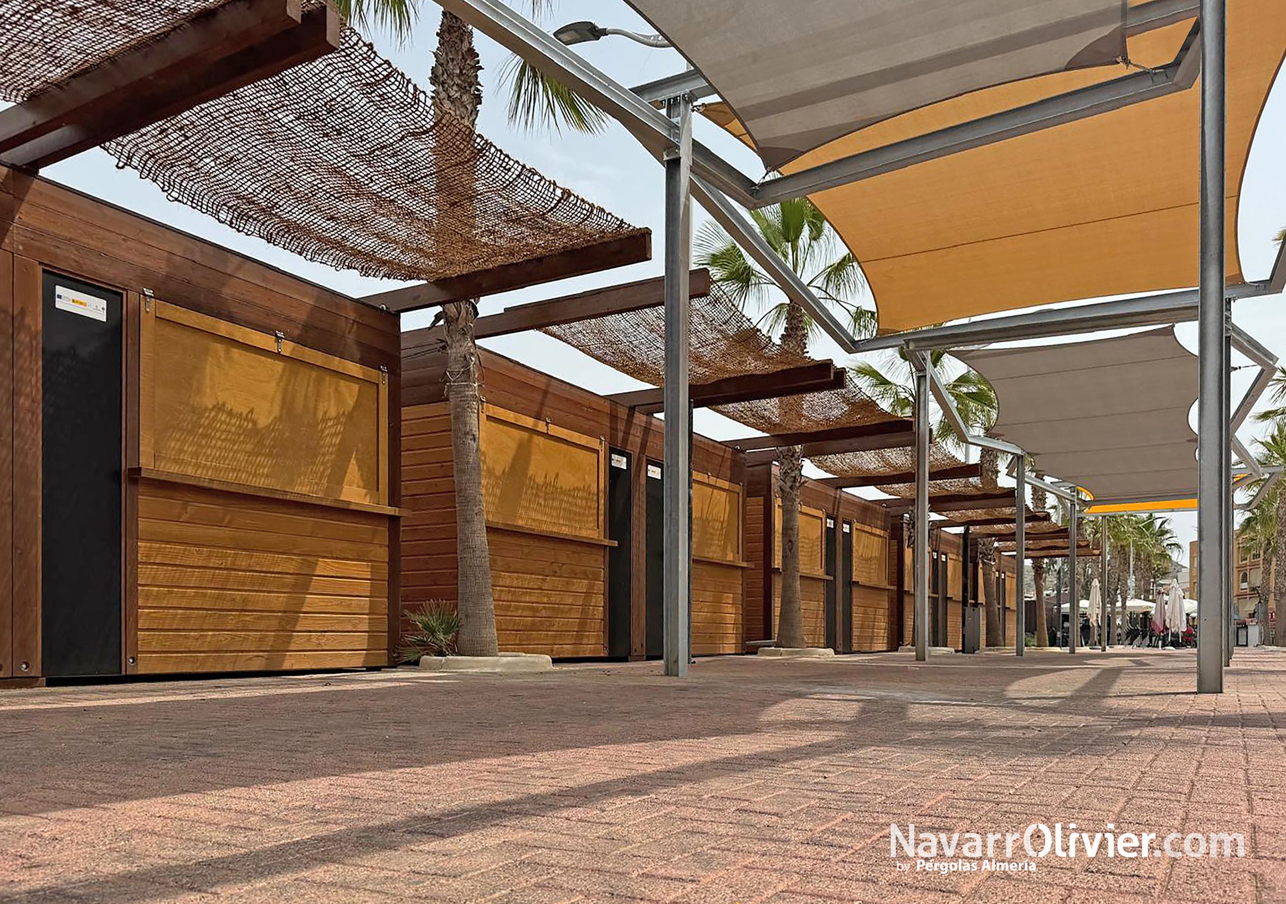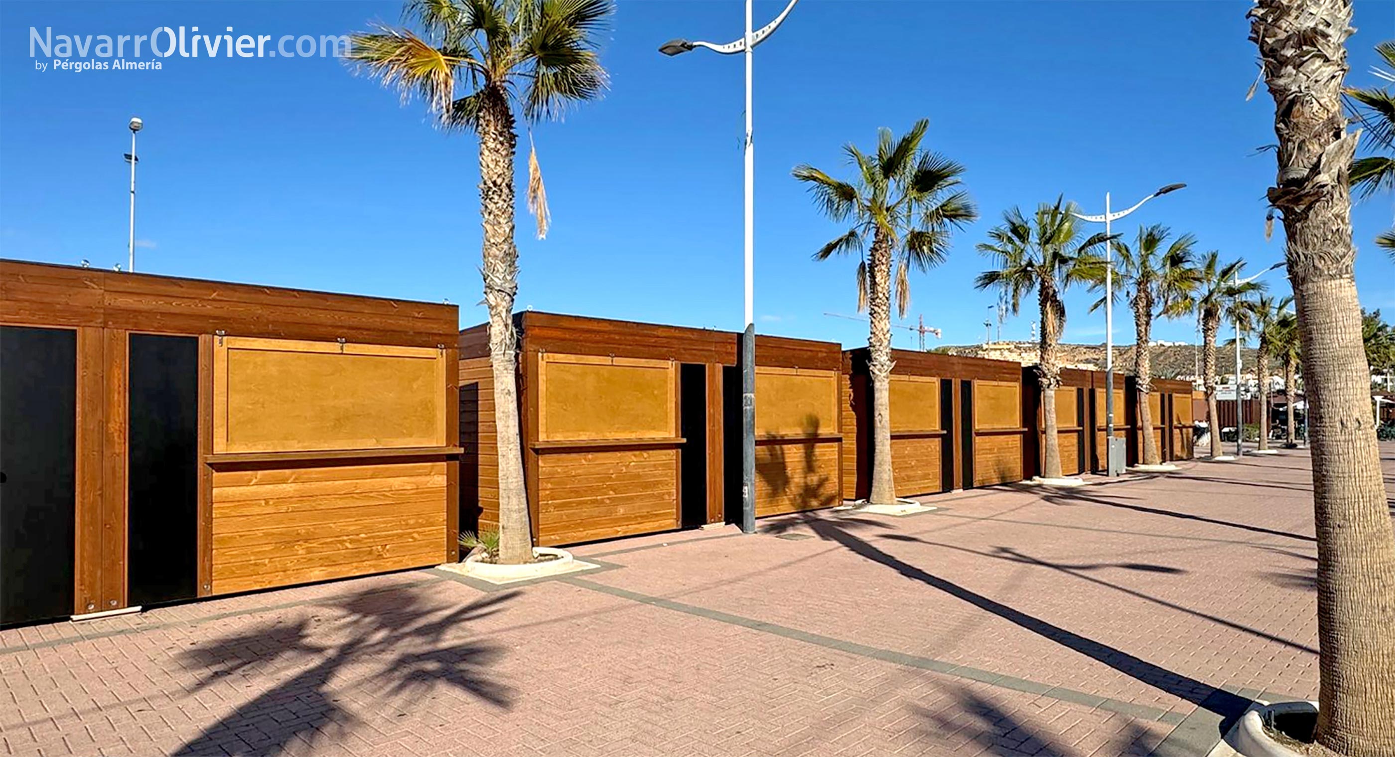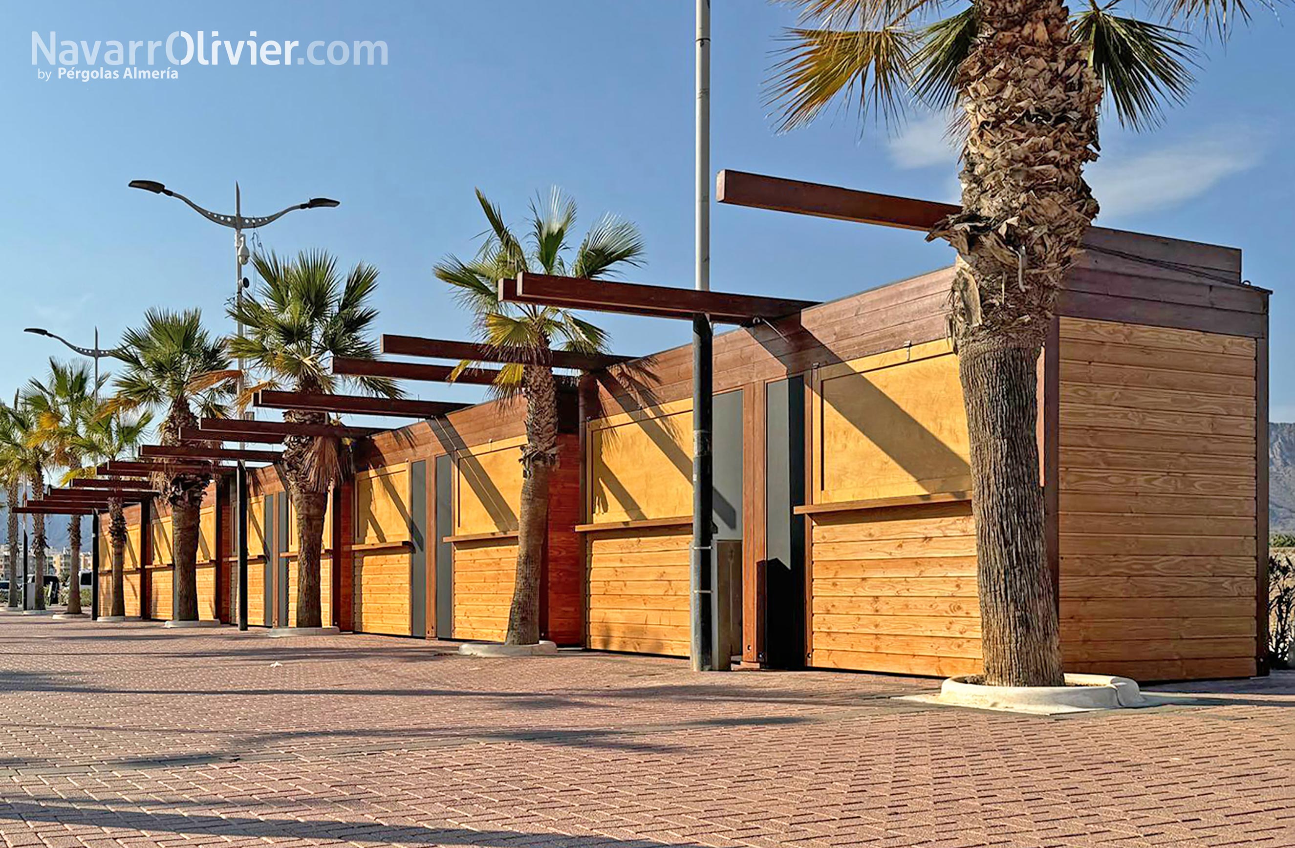 Casetas de madera para mercadillo en San Juan de los Terreros, Pulpí, Almería.