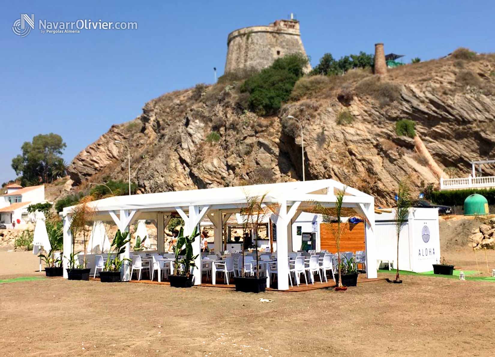 Chiringuito modular construido en madera para exterior, Aloha Playa Benajarafe, Vélez-Málaga.