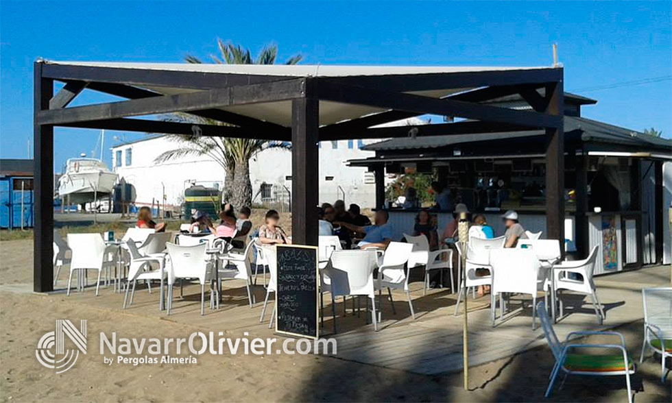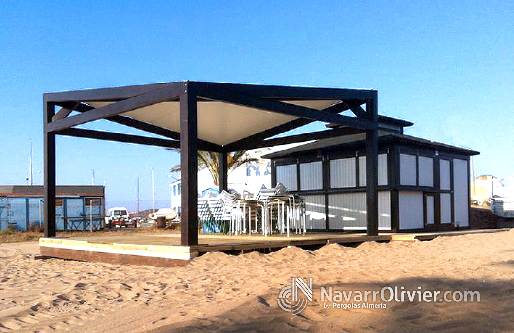 Chiringuito en madera para exterior con terraza ubicado en la playa Mar de Cristal de La Manga, Cartagena.