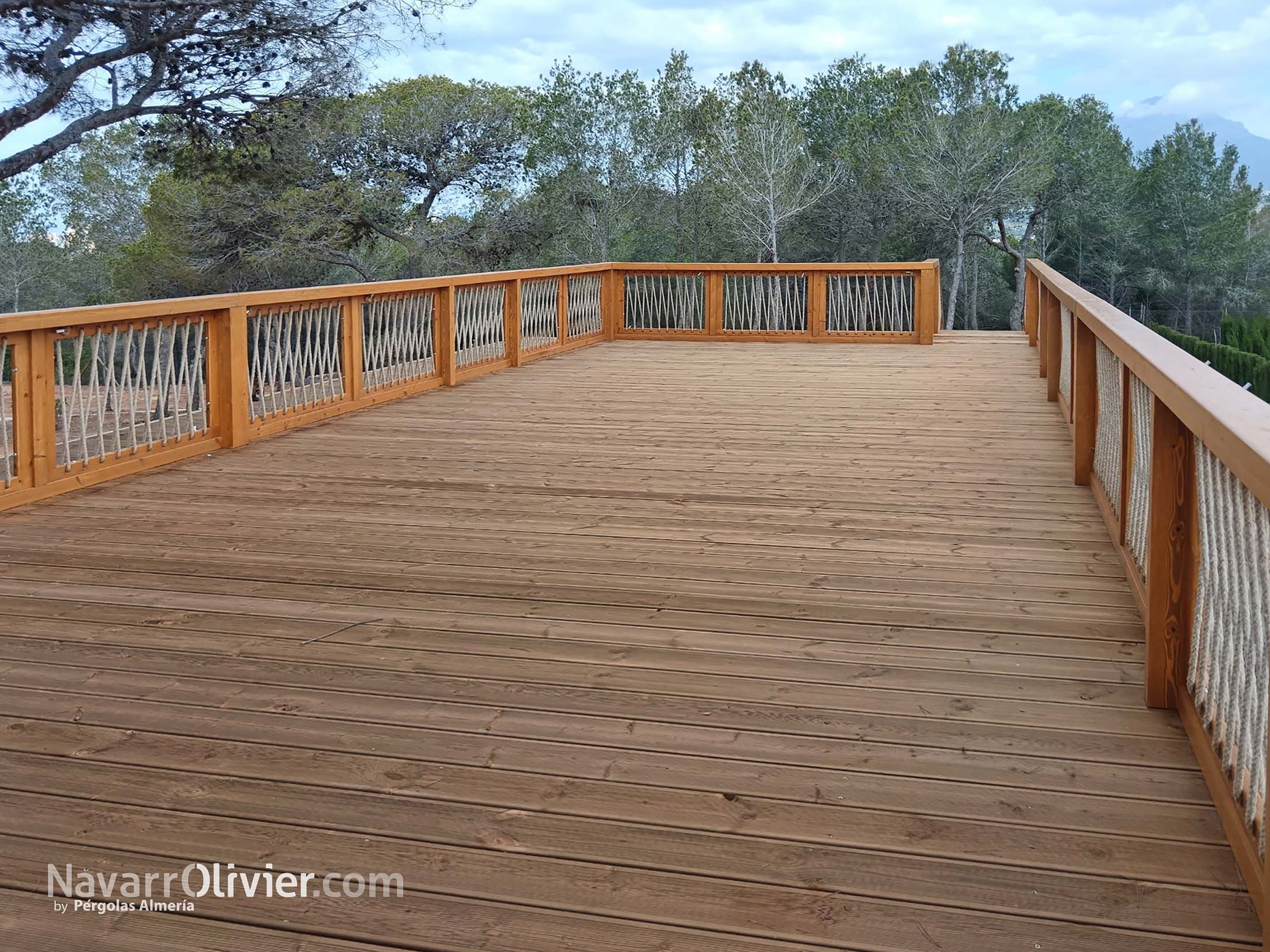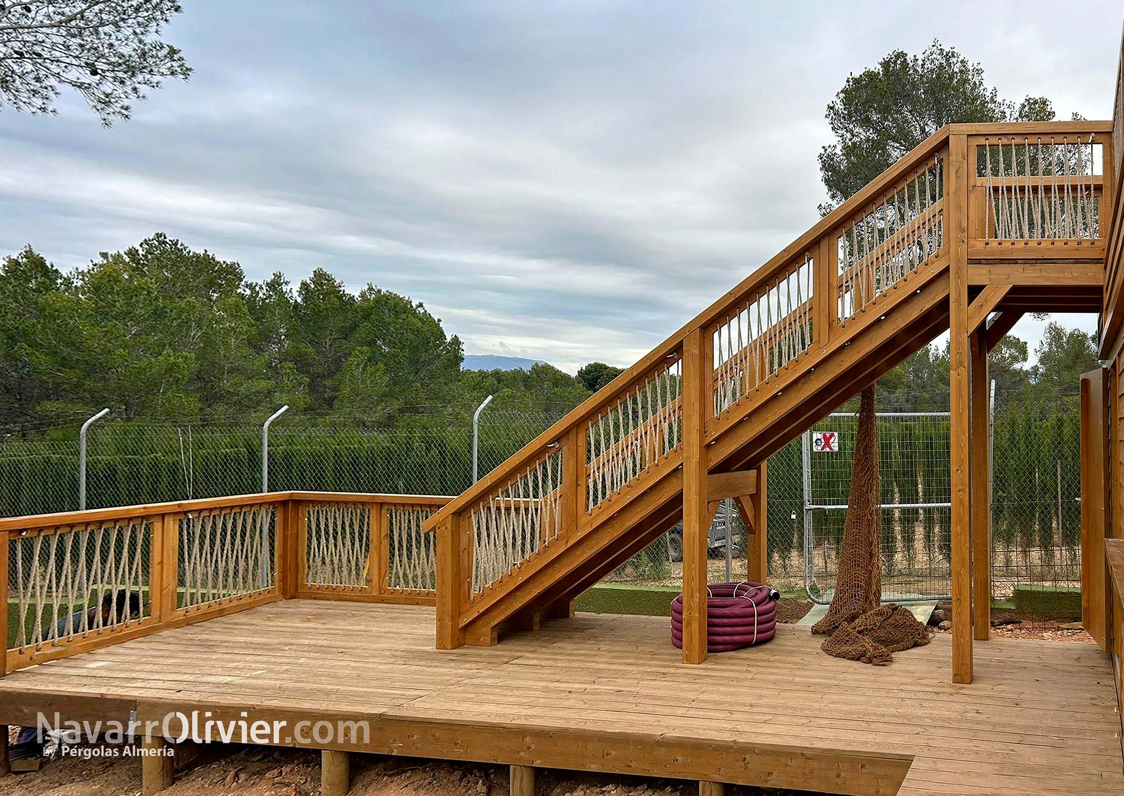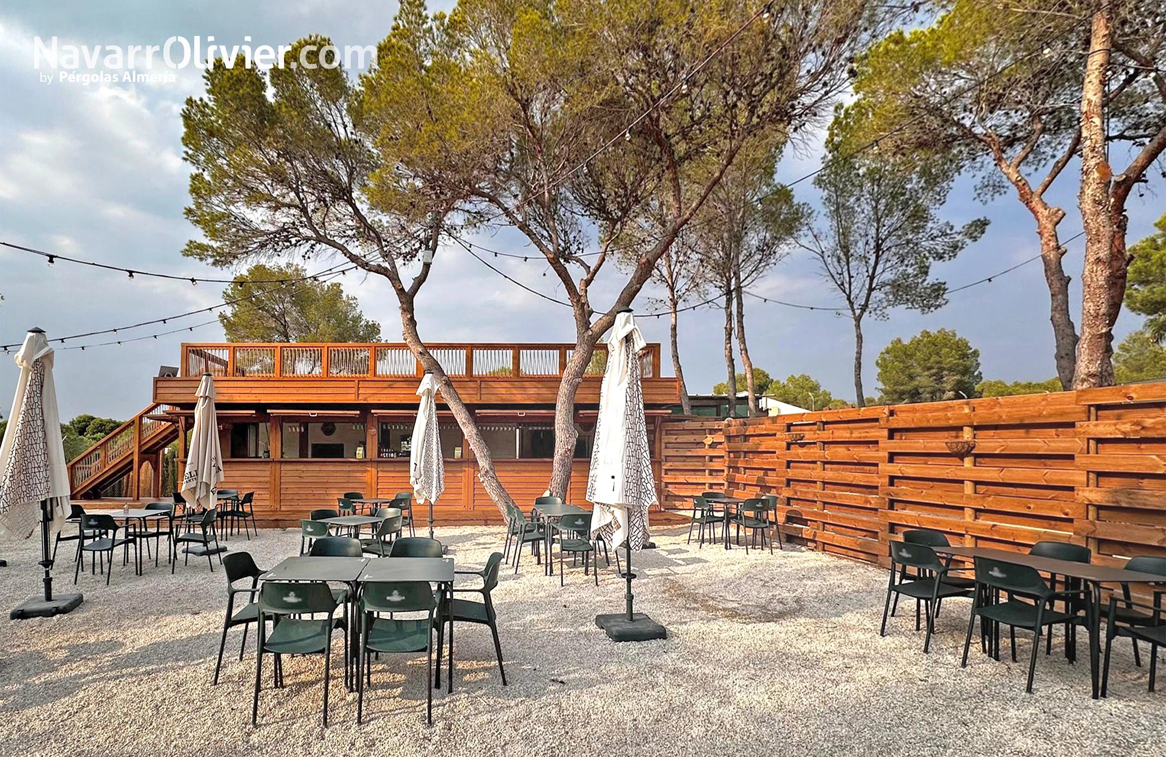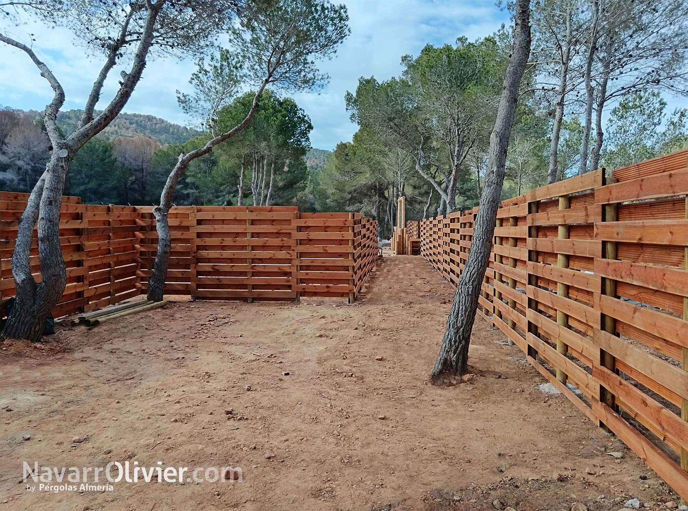 Otra de las construcciones realizadas son los muros en celosía de madera tratada en autoclave que delimitan los sectores del recinto de este lugar único de la Costa Blanca ubicado en Benidorm.