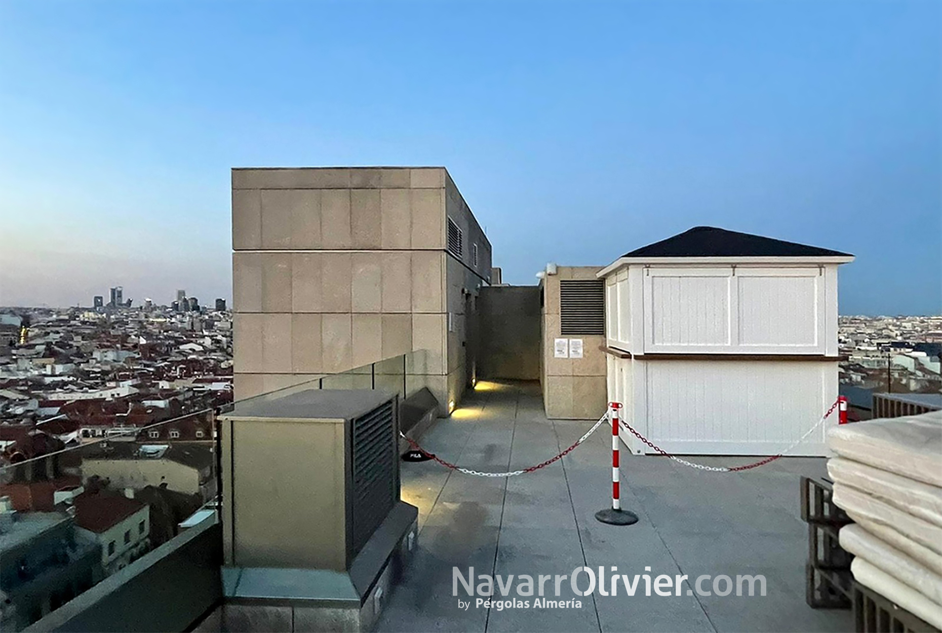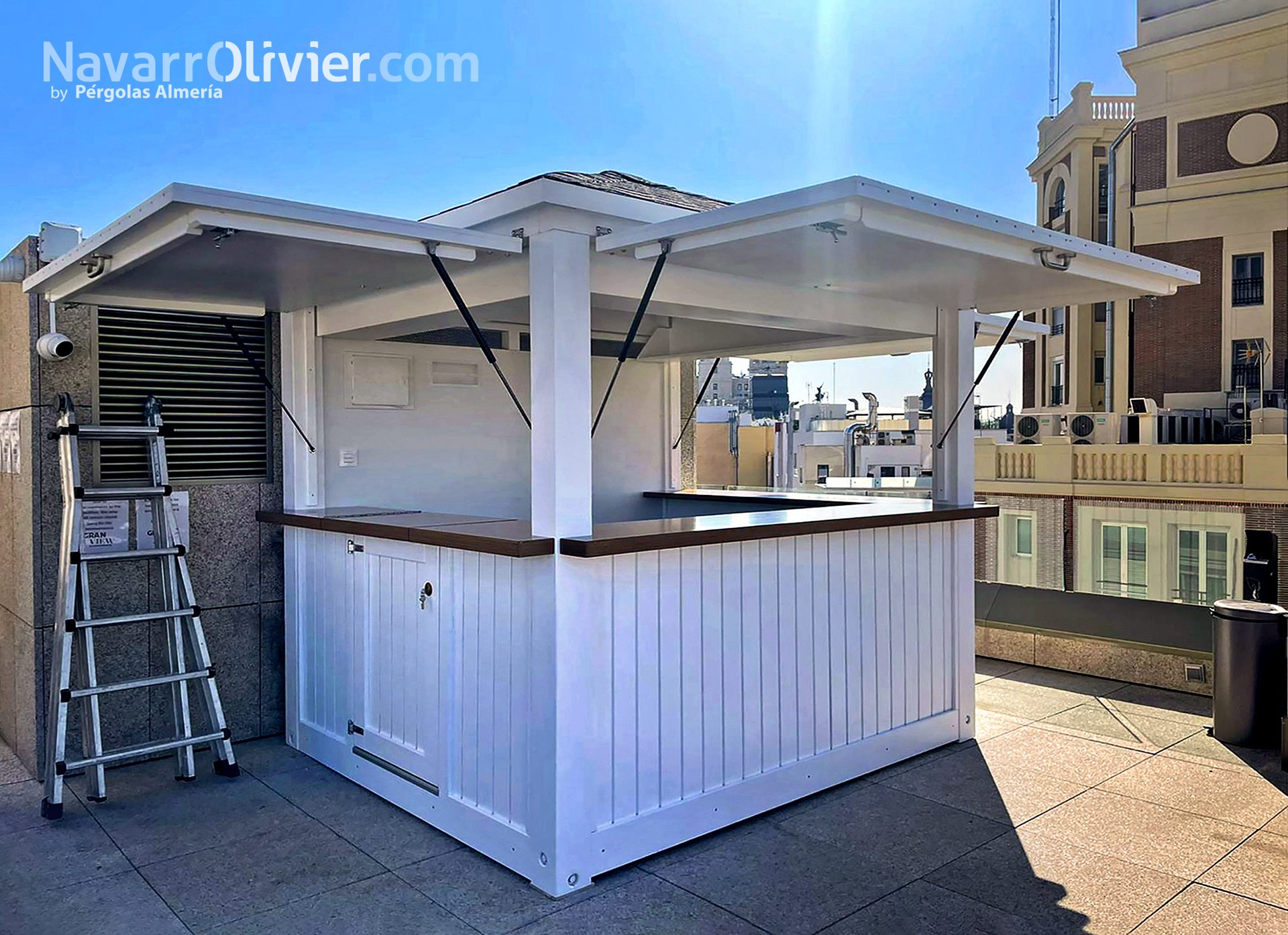 El skybar sigue una tendencia cada vez más en auge en las ciudades. Las terrazas en las azoteas necesitan dar servicio de bar, coctelería, heladería, etc. y en esos casos un chiringuito equipado con instalación eléctrica, barras y cierres de seguridad, es la opción más acertada.