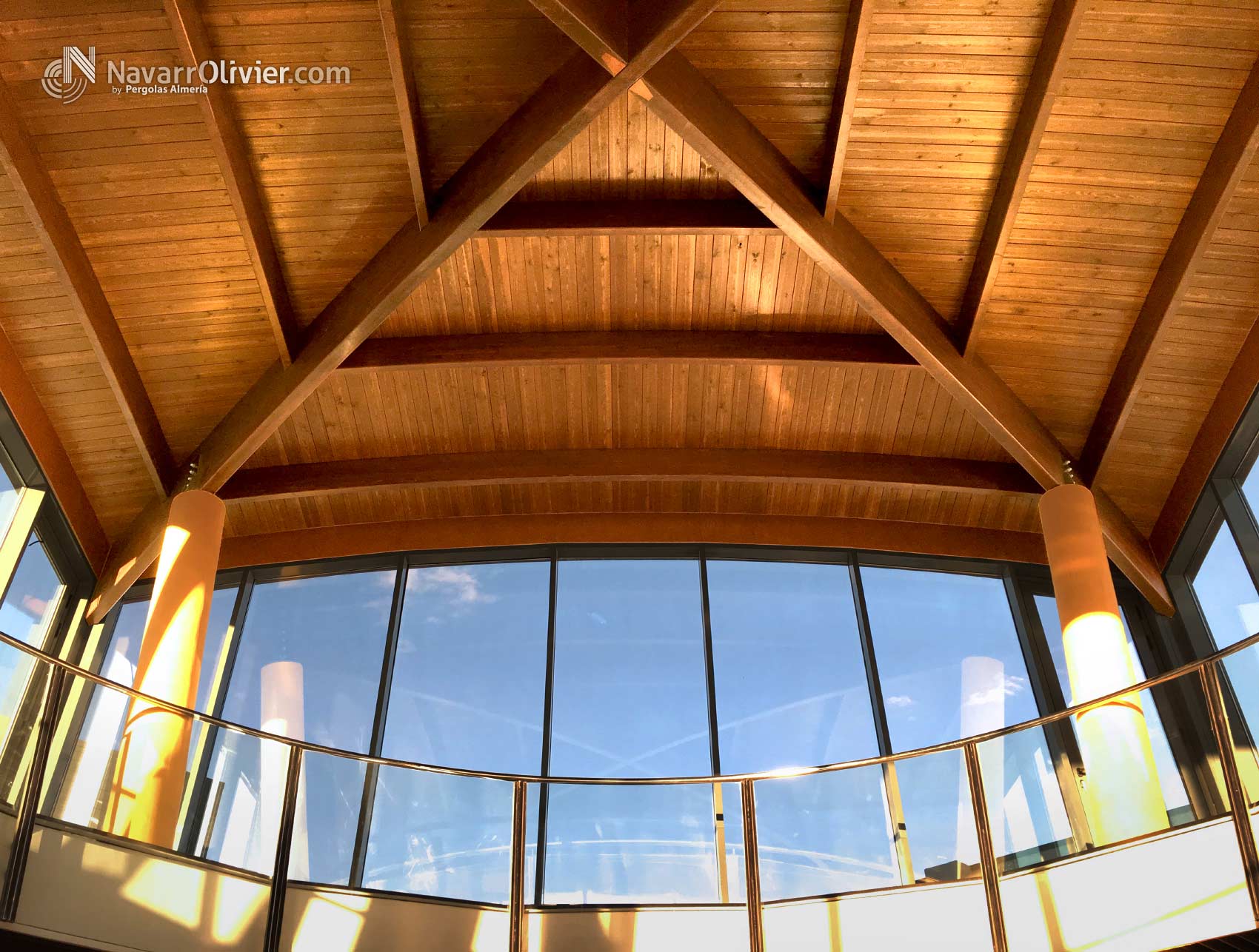 Construcción de cubierta con vigas de madera laminar curva.