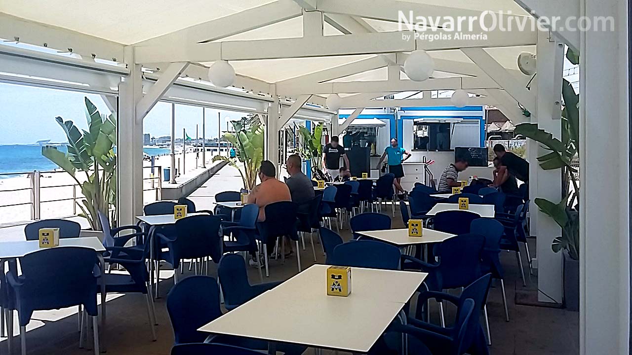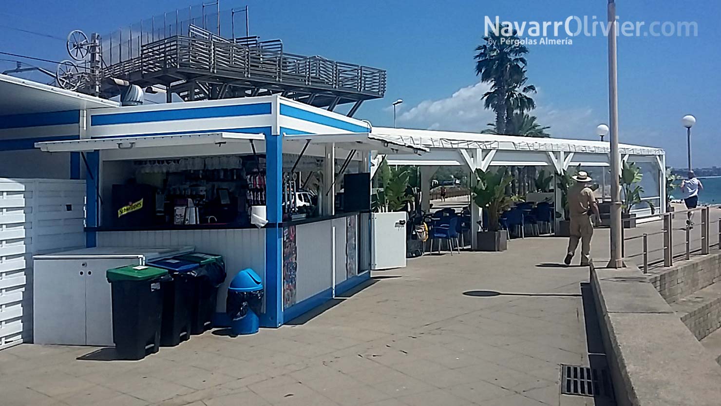 Las instalaciones cuentan con módulo de aseos accesibles para personas con movilidad reducida equipados ademas con cambiadores de bebes. El chiringuito modelo Castelldefels, de 20 m2 ha sido configurado con cocina y zona de bar. Su amplia terraza cubierta con una pérgola de madera para exterior cuenta además con un cerramiento enrrollables que protege de la brisa sin perjudicar las vistas.