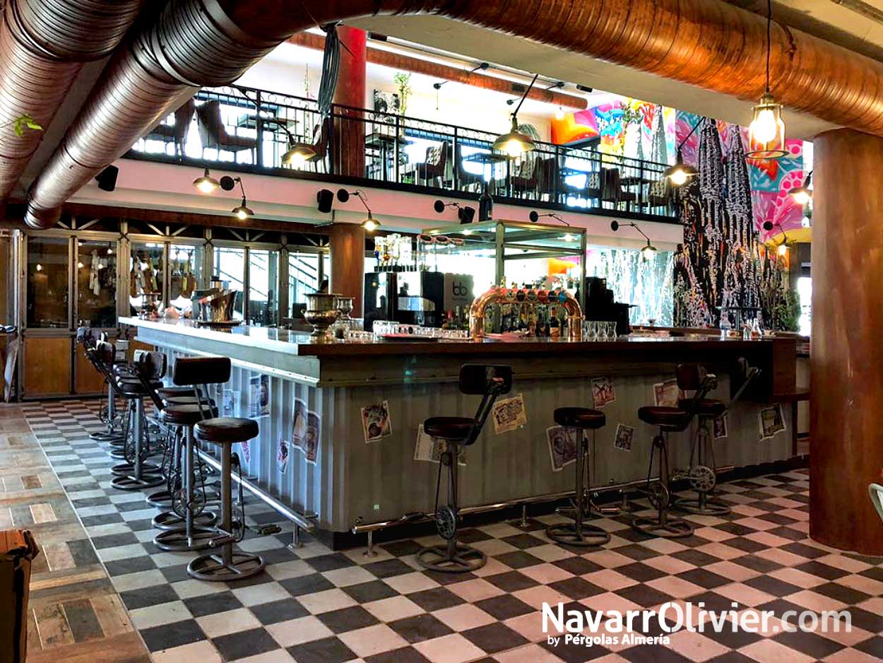 Su ecléctico interiorismo se inspira en un film hispano-frances «làuberge espagnole», el local de 980 m2 combina estilo industrial vintage con el street art que viste sus muros.