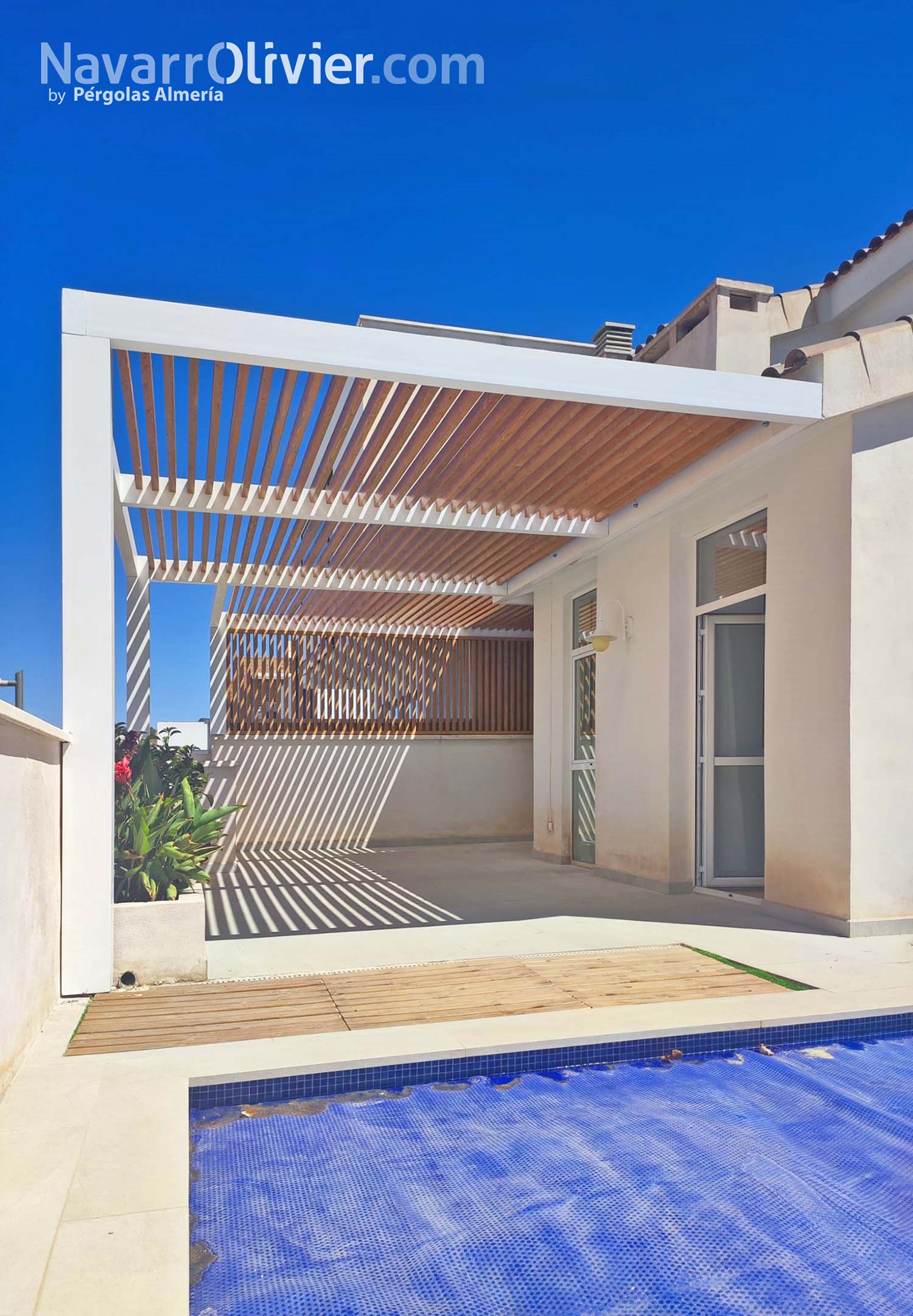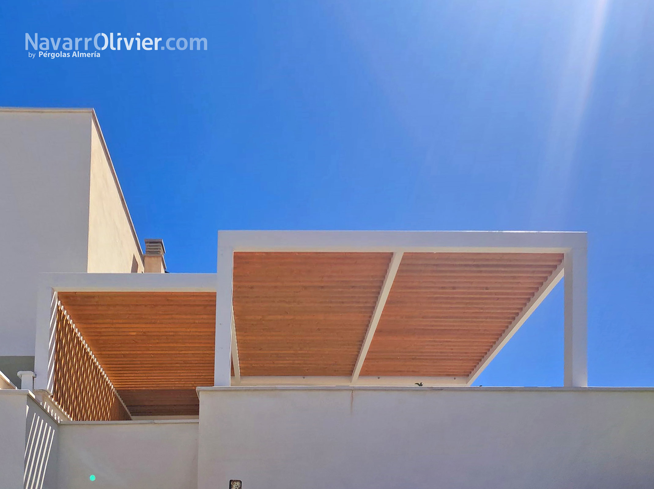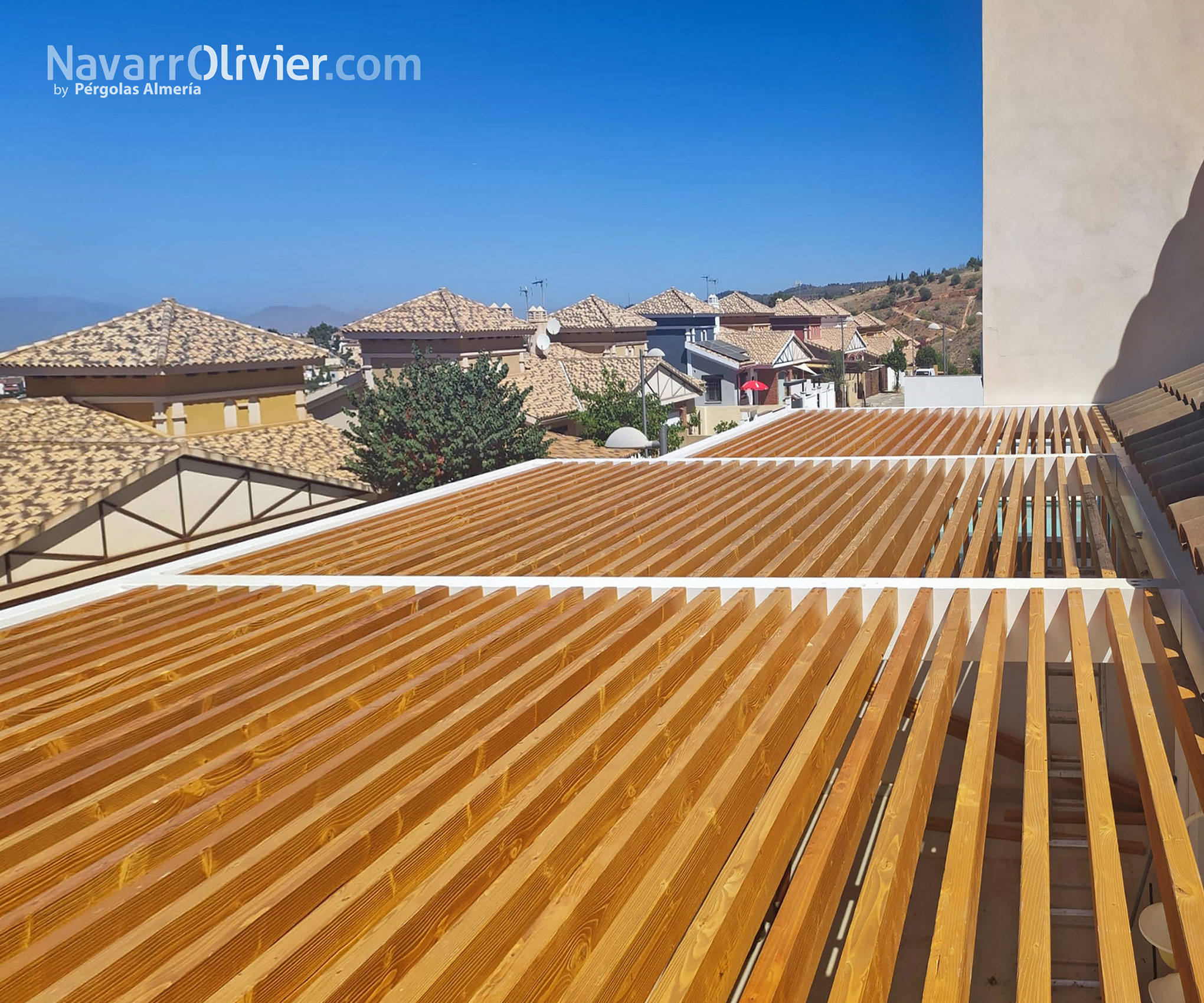 Pérgola de madera para ático con piscina en Estepona, Málaga.