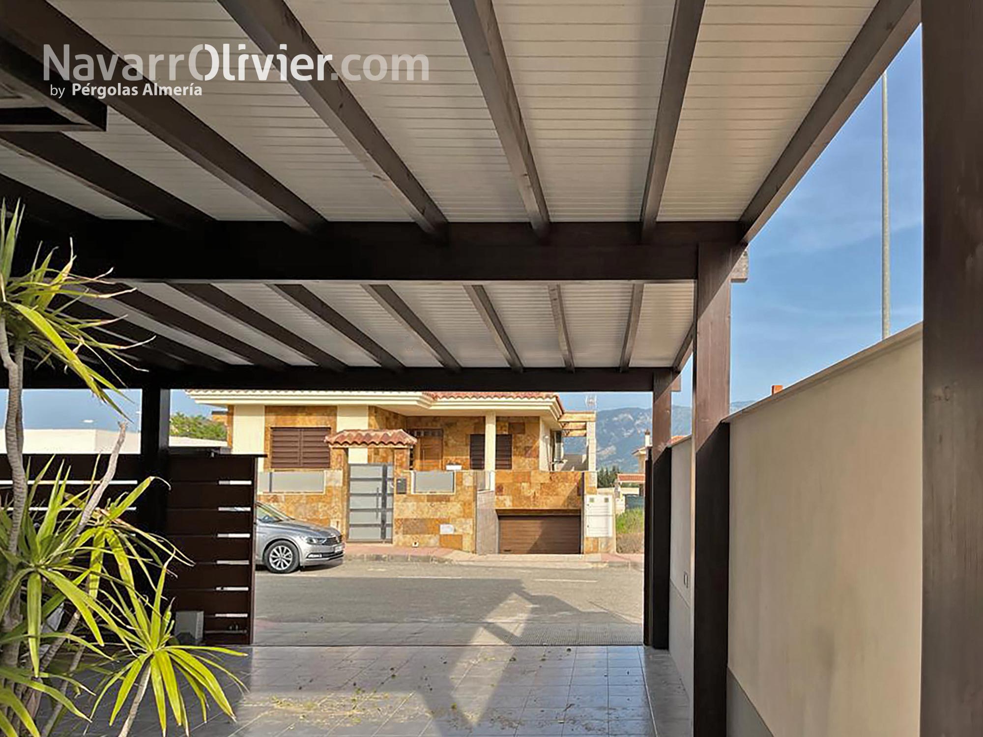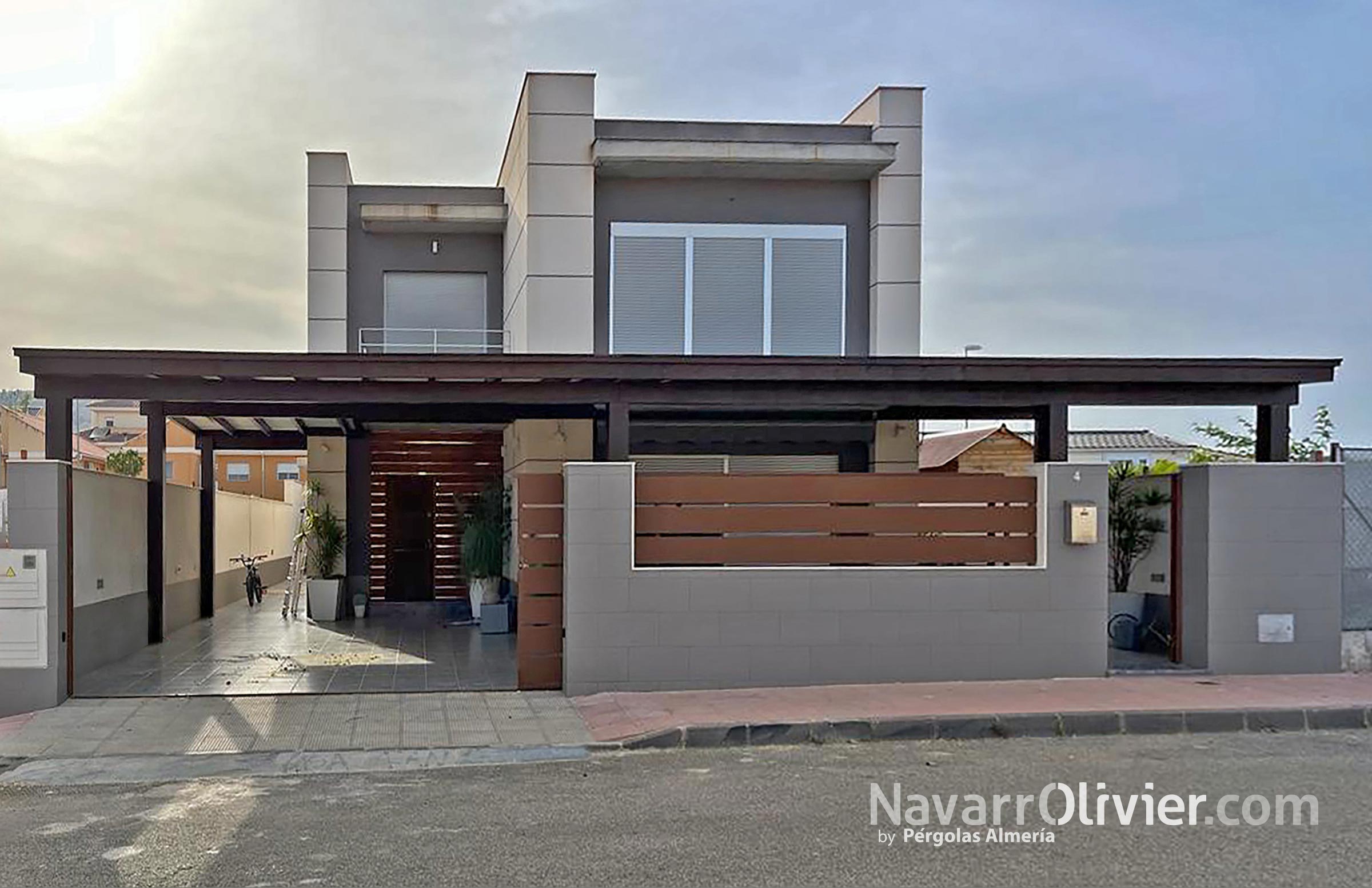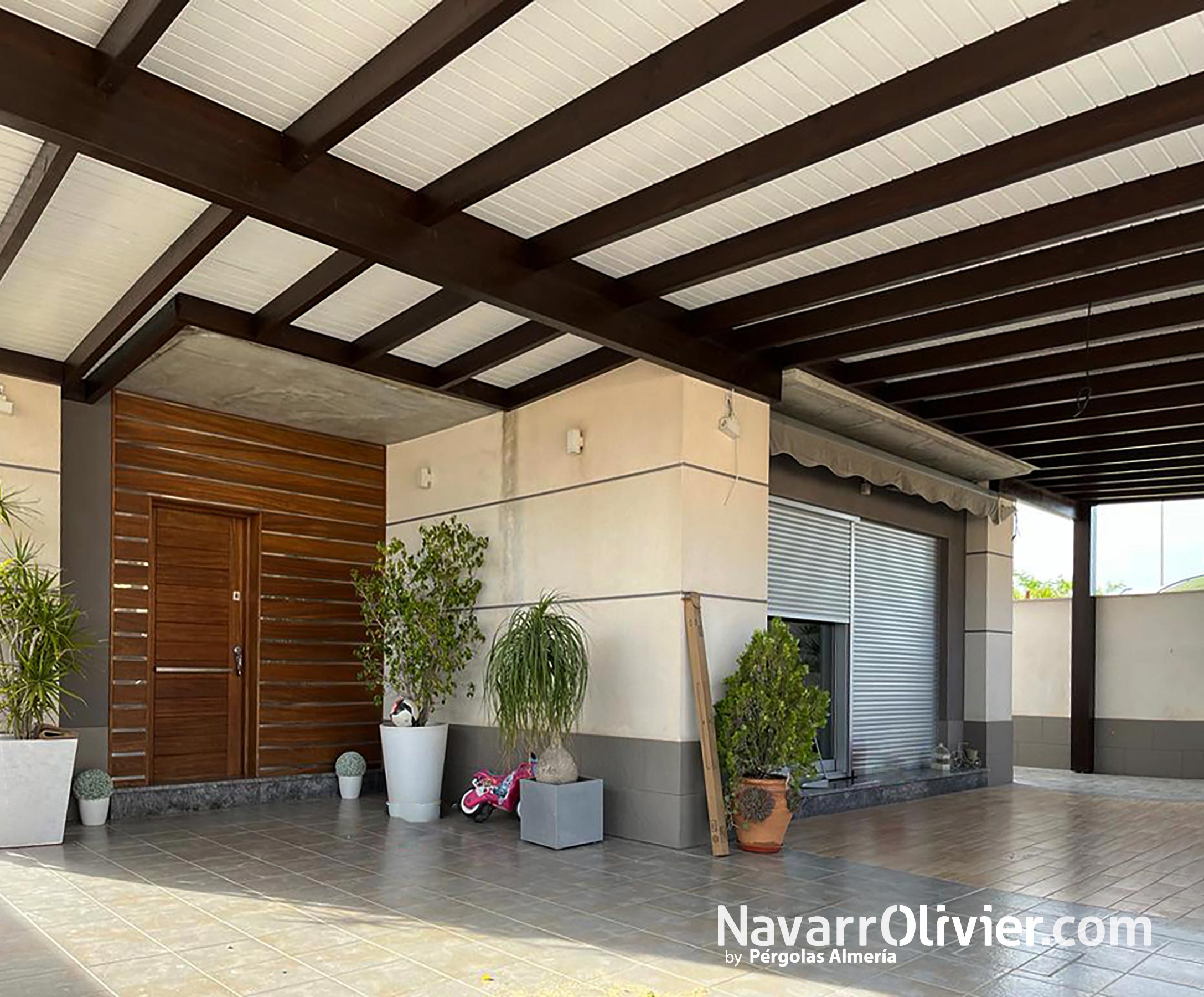 Pérgola de madera para patio delantero de vivienda en Totana, Región de Murcia.