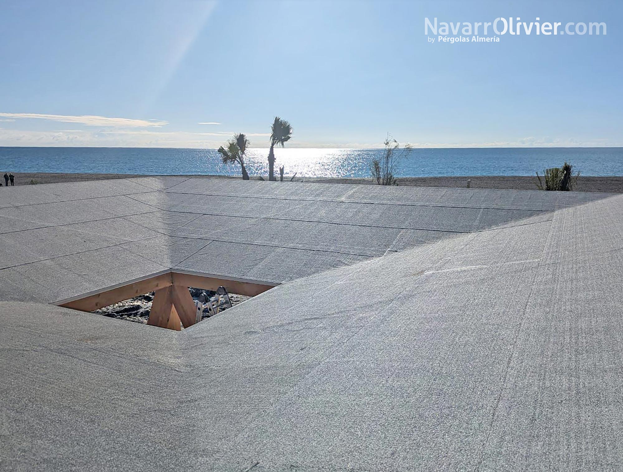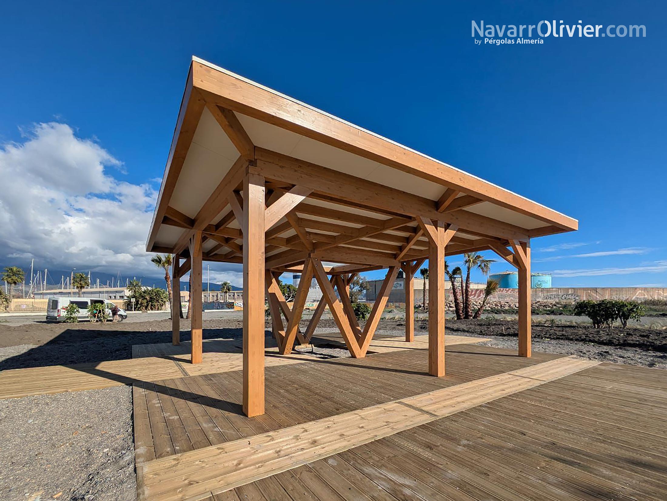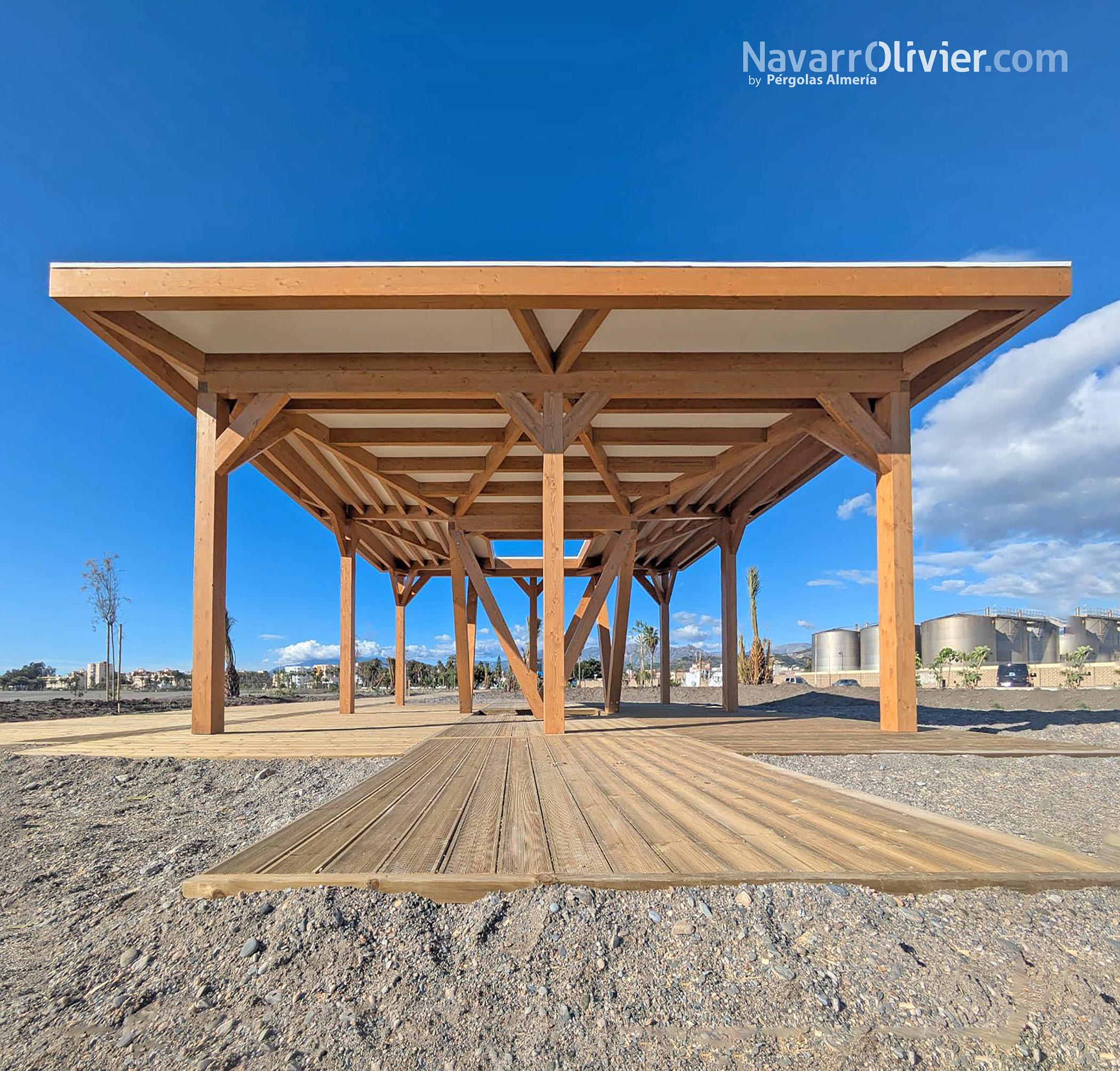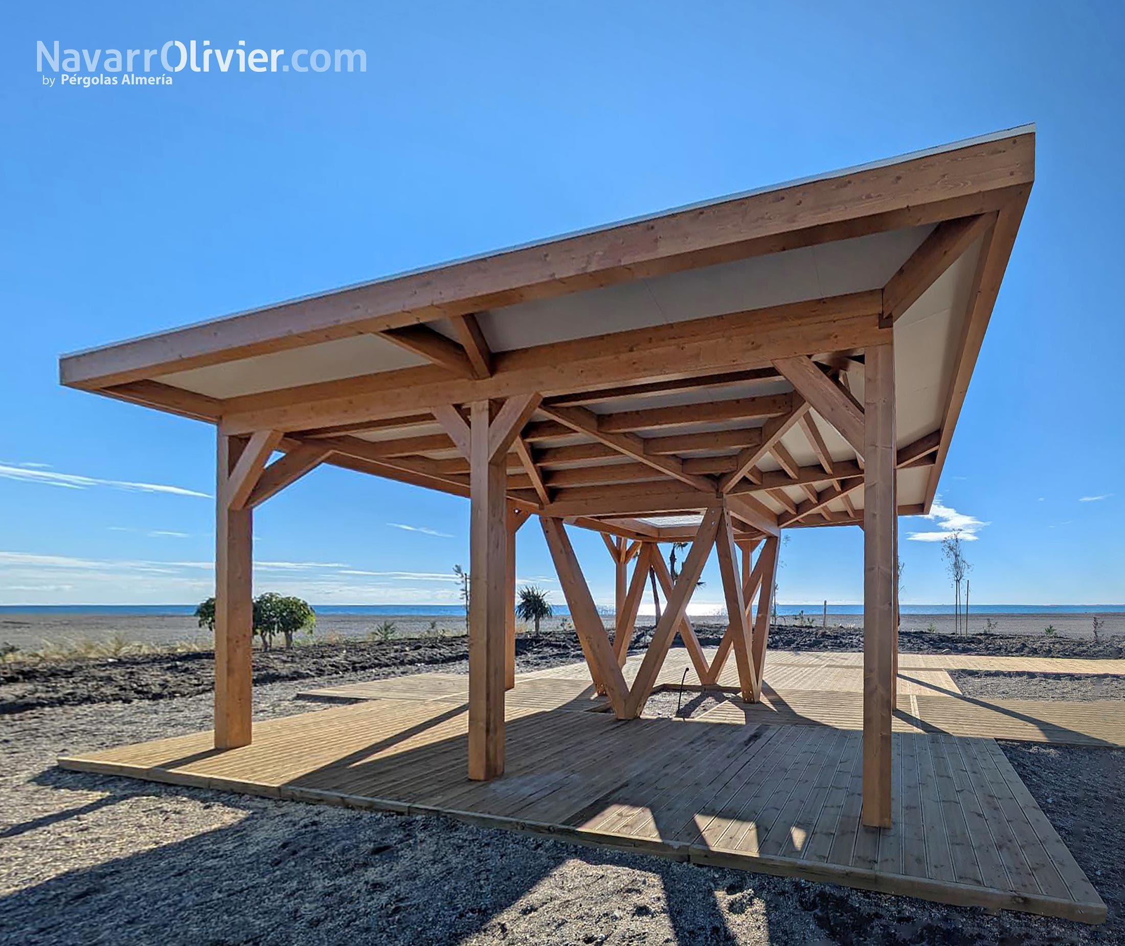 Módulo de sombra con pérgola de diseño para Senda Litoral, Playa del Cable, Motril, Granada, Andalucía.