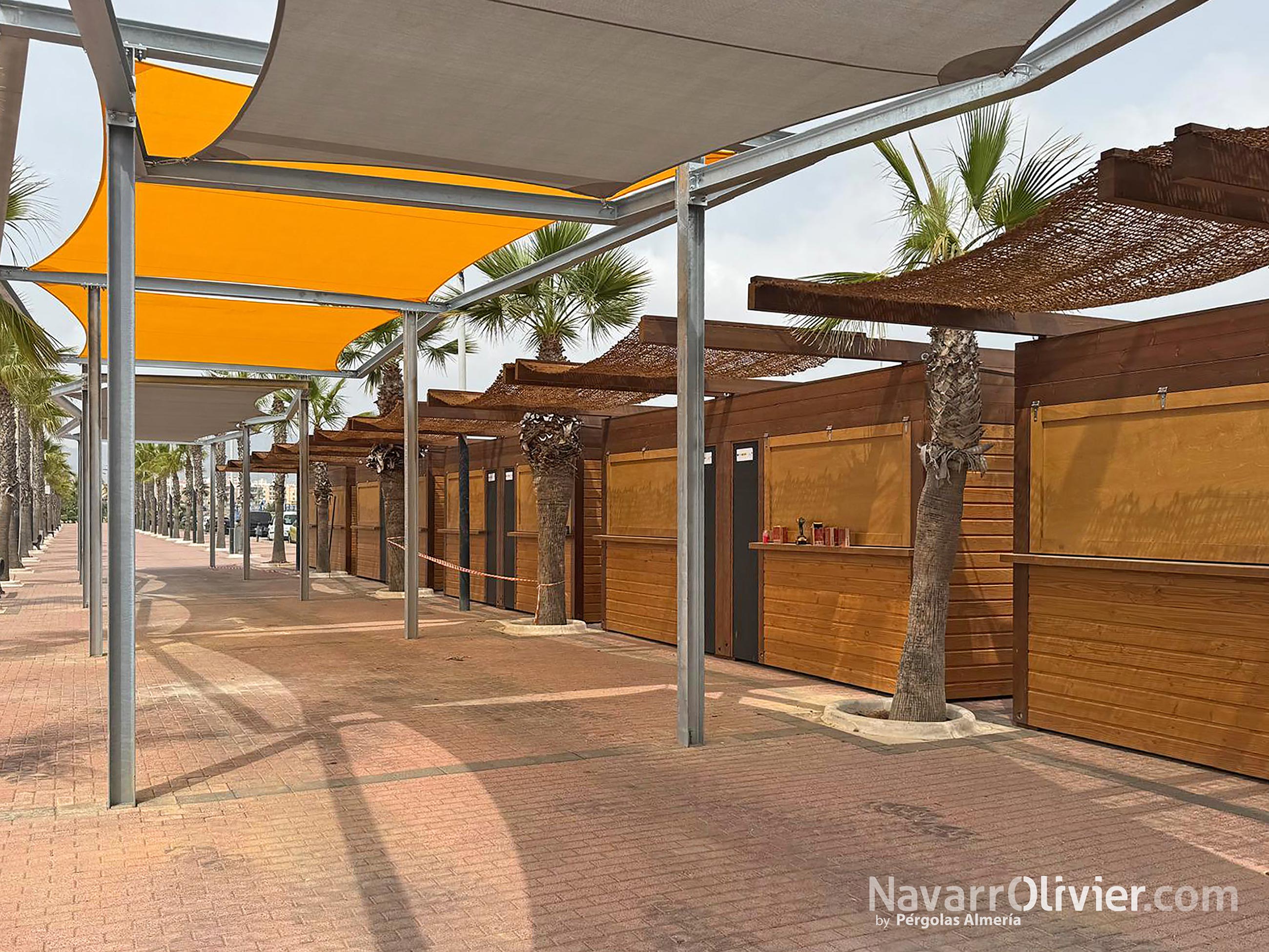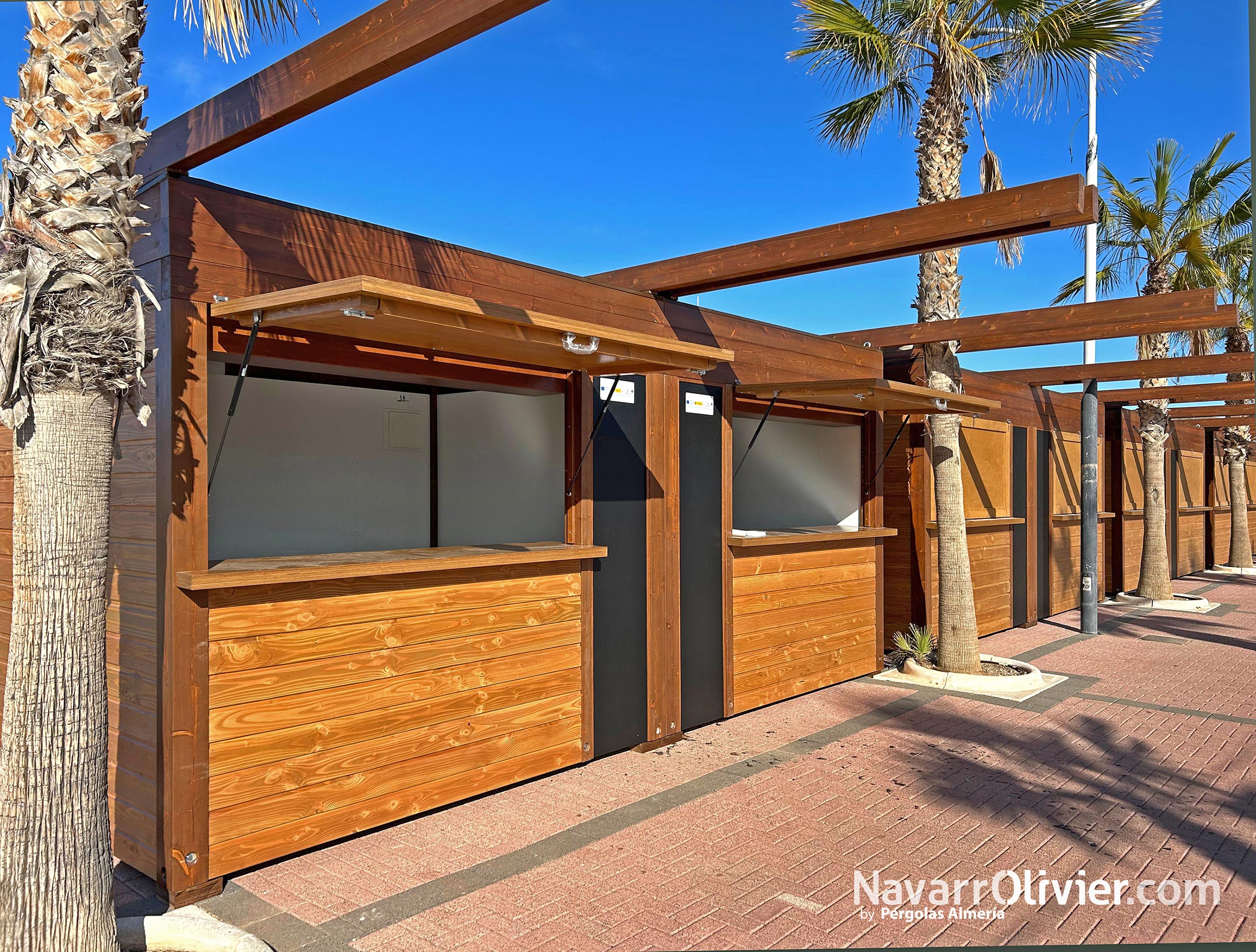 Casetas de madera para mercadillo en San Juan de los Terreros, Pulpí, Almería.