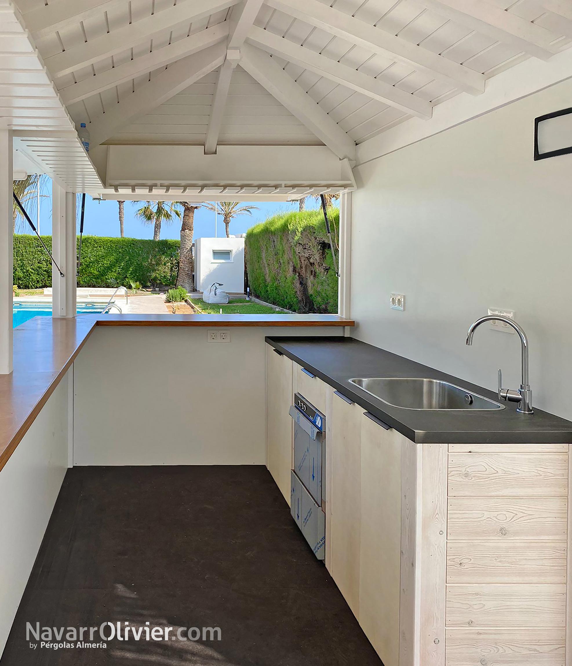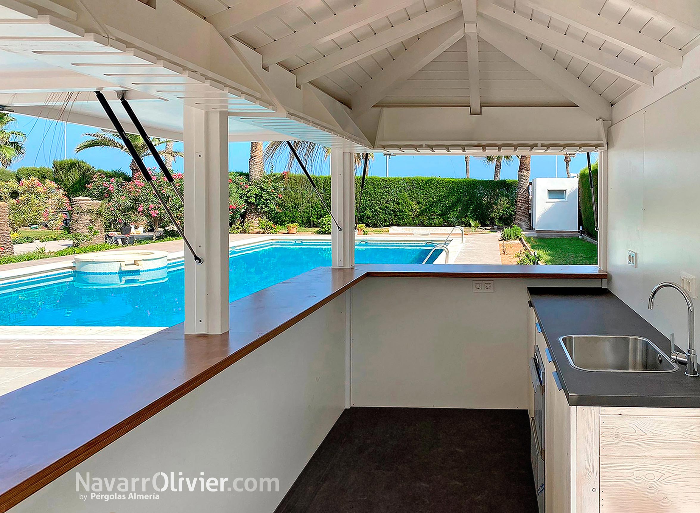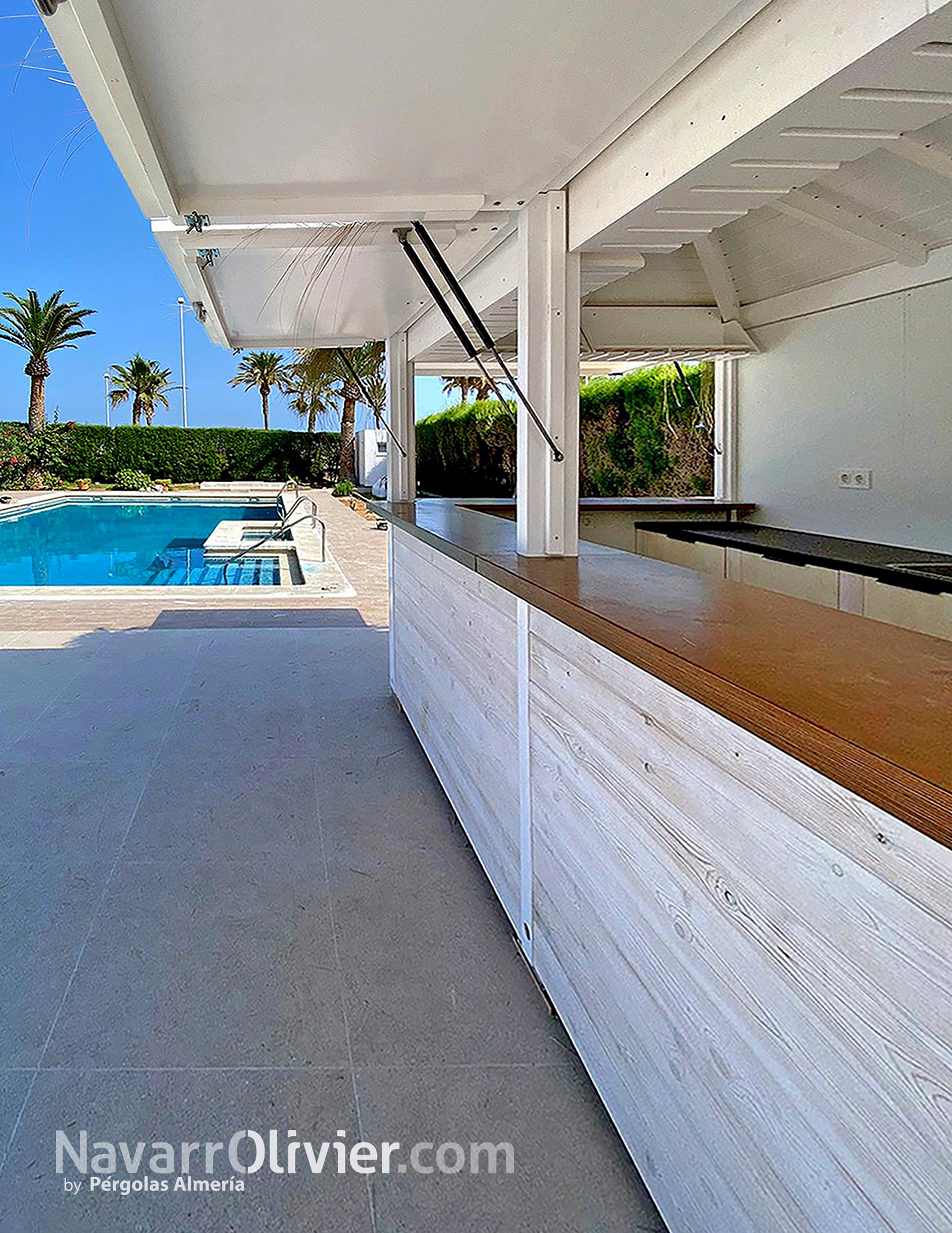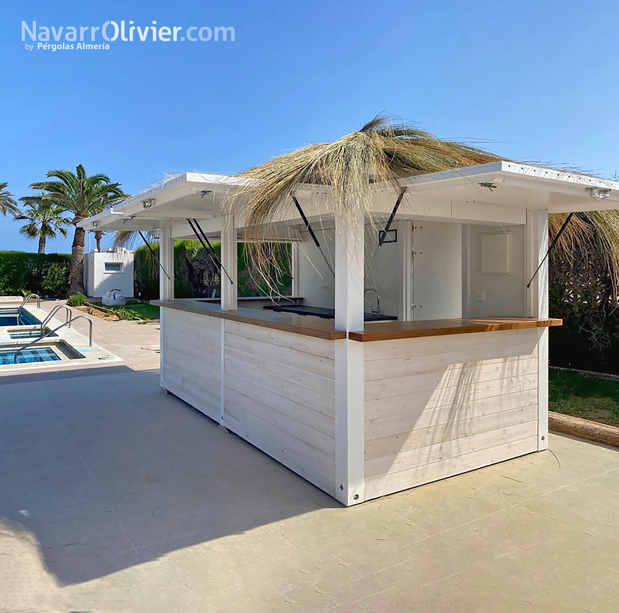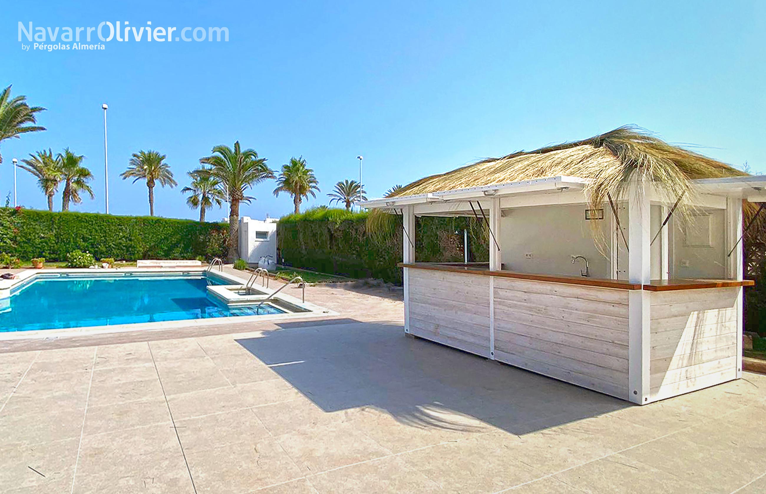 Chiringuito modular a medida para patio con piscina en Roquetas de Mar, Almería, Andalucía.